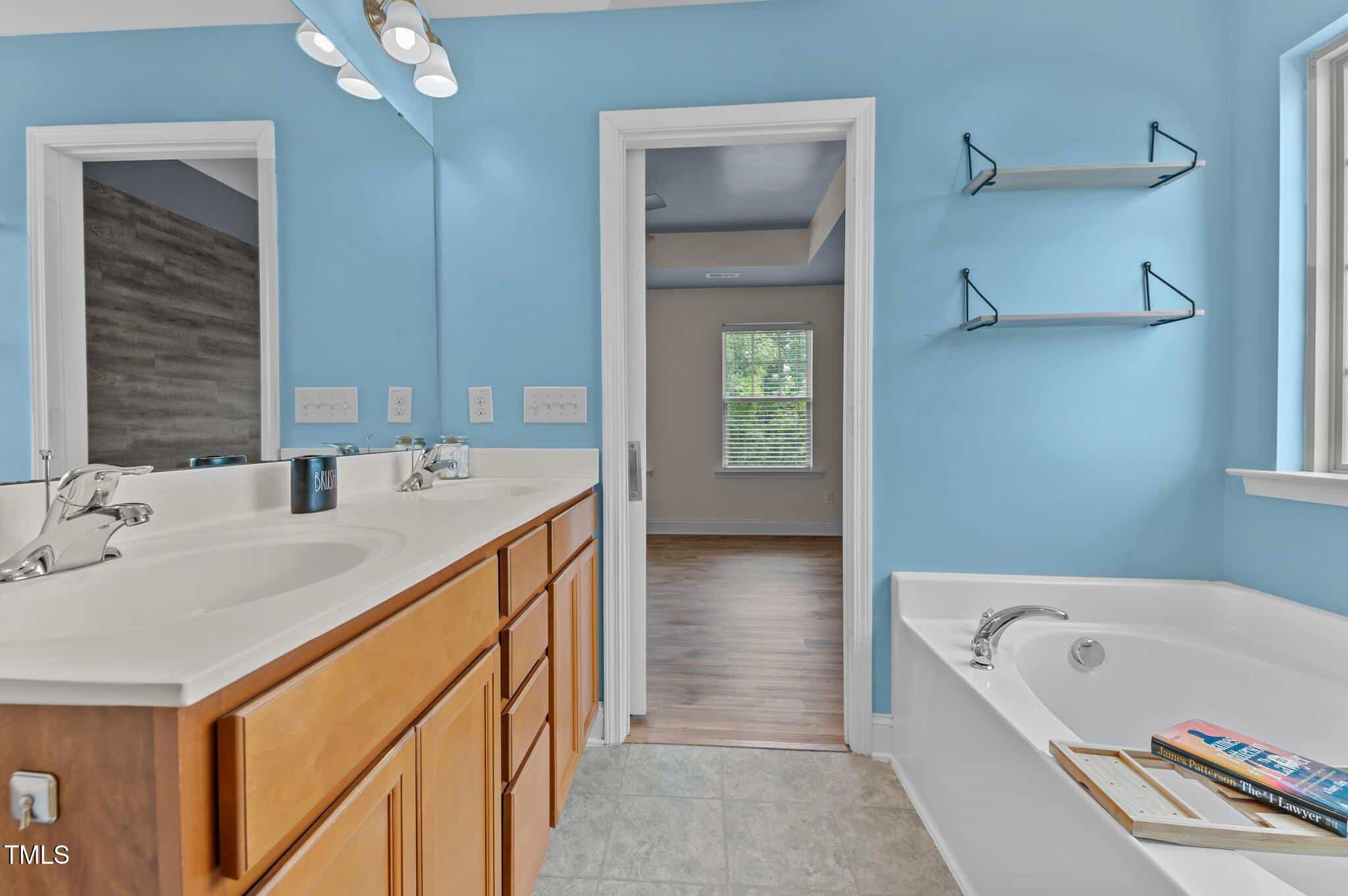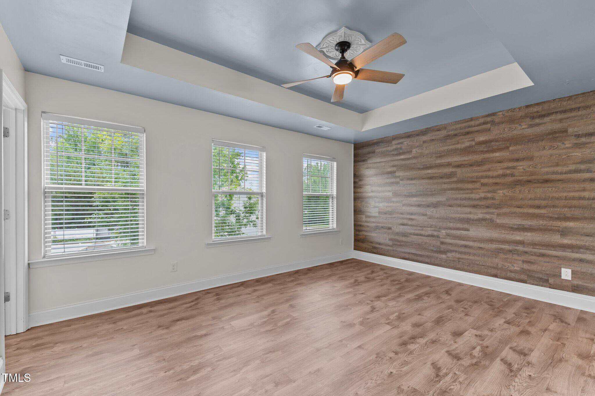 Upstairs, the generously sized primary suite is a peaceful retreat, featuring a tray ceiling, WIC, and an en-suite bath featuring dual vanities, a soaking tub, and a separate shower. Three additional bedrooms, a full bath, and a laundry room complete the second floor.