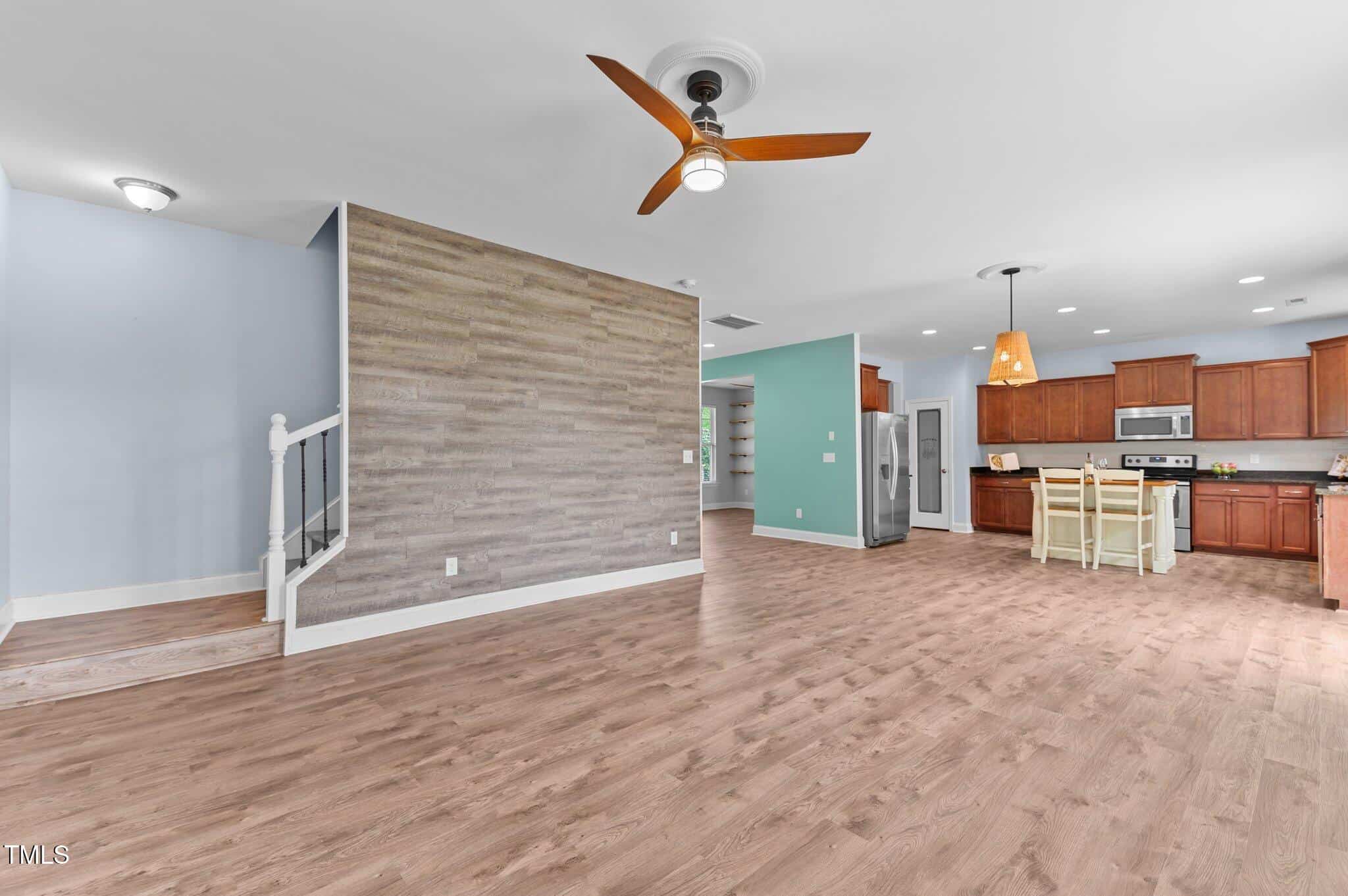 Move In Ready, 4-bedroom, 2.5-bath home in the desirable Olde Liberty neighborhood, offering pool membership access. The home boasts impressive curb appeal, featuring upgraded hardscaping and vibrant landscaping. Inside, the open-concept layout is filled with natural light and features LVP flooring throughout the home.