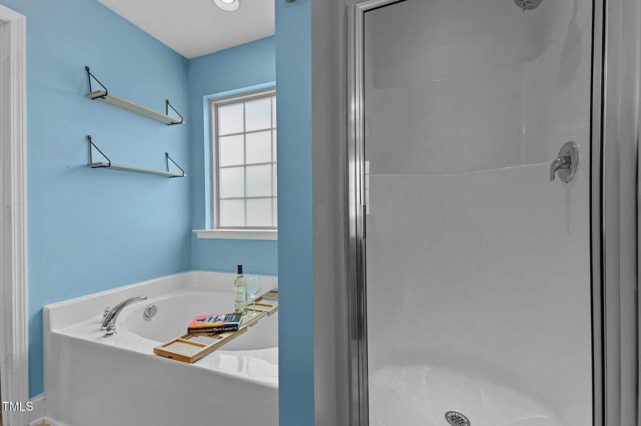 Move In Ready, 4-bedroom, 2.5-bath home in the desirable Olde Liberty neighborhood, offering pool membership access. The home boasts impressive curb appeal, featuring upgraded hardscaping and vibrant landscaping. Inside, the open-concept layout is filled with natural light and features LVP flooring throughout the home. The spacious dining/study area includes custom shelving, adding both practicality and charm. In the Kitchen you’ll find warm wood toned cabinetry, granite counter tops, subway backsplash, SS appliances and an island. The kitchen sink offers a view of a tranquil, lush backyard, seamlessly bringing the beauty of nature inside. It flows seamlessly into the breakfast area and living room, making it perfect for large gatherings or entertaining guests. Upstairs, the generously sized primary suite is a peaceful retreat, featuring a tray ceiling, WIC, and an en-suite bath featuring dual vanities, a soaking tub, and a separate shower. Three additional bedrooms, a full bath, and a laundry room complete the second floor. This home also features stylish light fixtures, solar panels to lower electric bills, and custom doors throughout. Located just minutes from US-1/Capital Blvd, this home offers quick access to dining, shopping and entertainment. Don’t let this opportunity slip byâschedule a showing today!