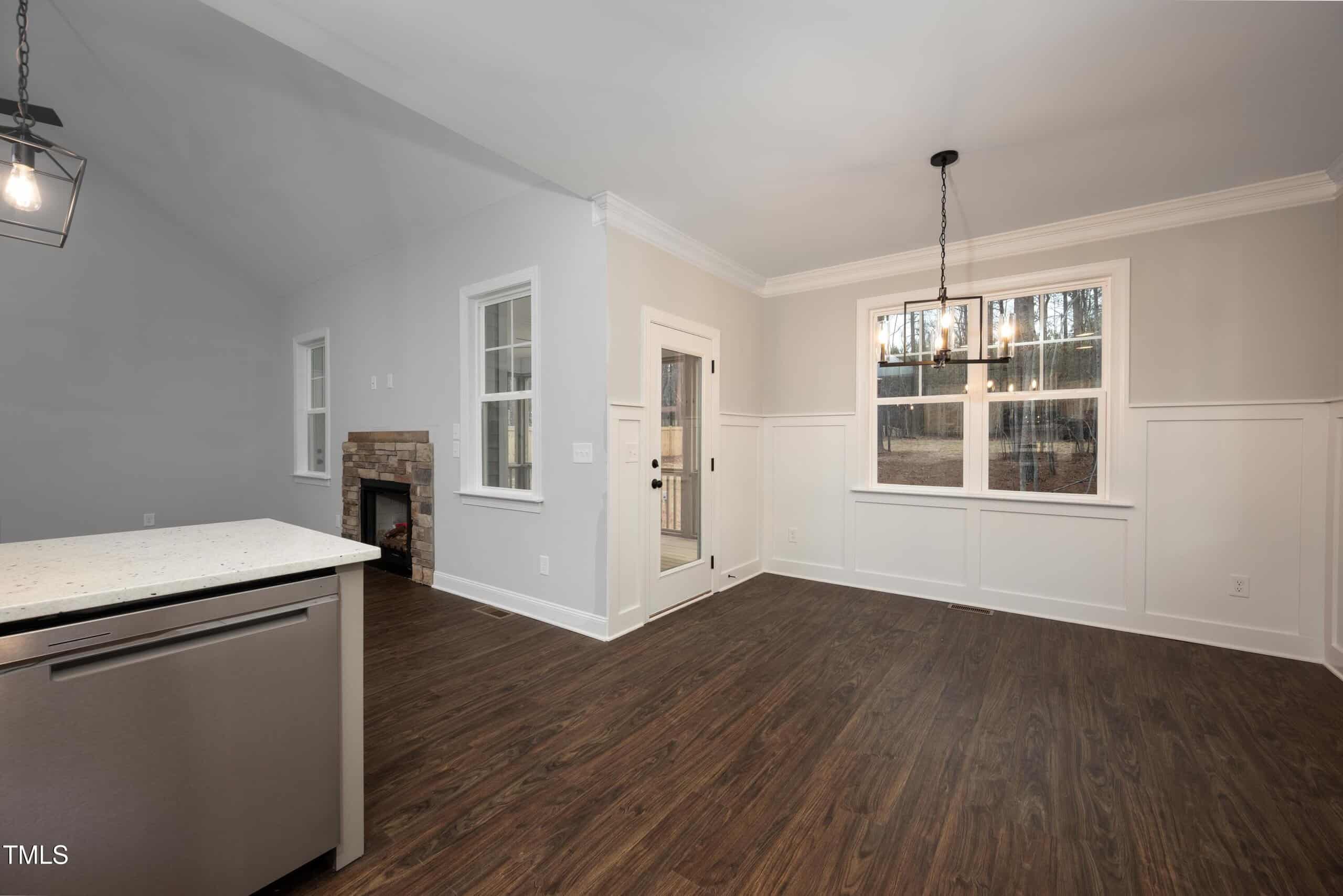 Split Ranch with 2nd Floor Bonus room! Large wooded lot! Vaulted ceiling Family Room with gas log fireplace! Kitchen Cab with Granite Tops and tile backsplash! Pantry! Open Dining to kitchen & access to covered back Porch! Master bedroom with Tray Ceiling and access door to covered porch, walk-in closet/wood shelving! Master bath with shower! Large second floor Bonus room, plenty of walk in storage and optional second floor bath rough plumbed in. completion Oct 2024