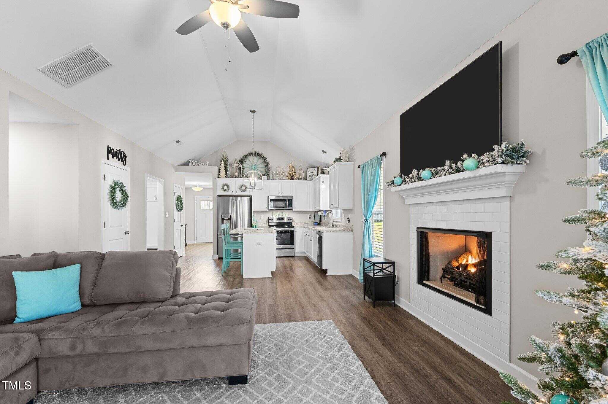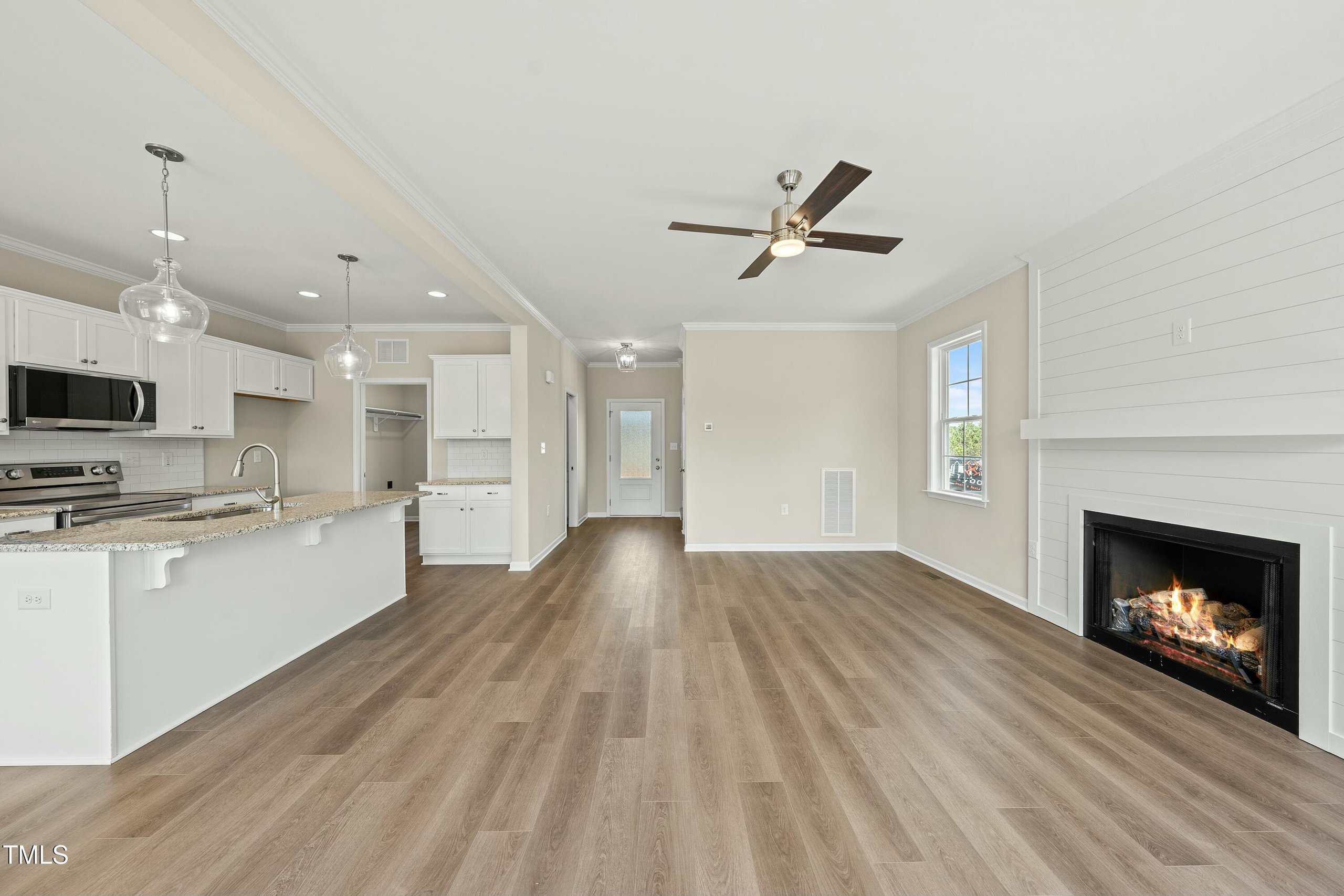 Charming Farmhouse Style 1.5 Story home on a Beautiful private level lot in one of the Best neighborhoods in Franklin Co. Open concept living , low maintenance LVP flooring , Shiplap Fp accent wall , pocket door half bath, sunny laundry room conveniently located near the kitchen, Tile kitchen backsplash and granite counters + SS Appliances.