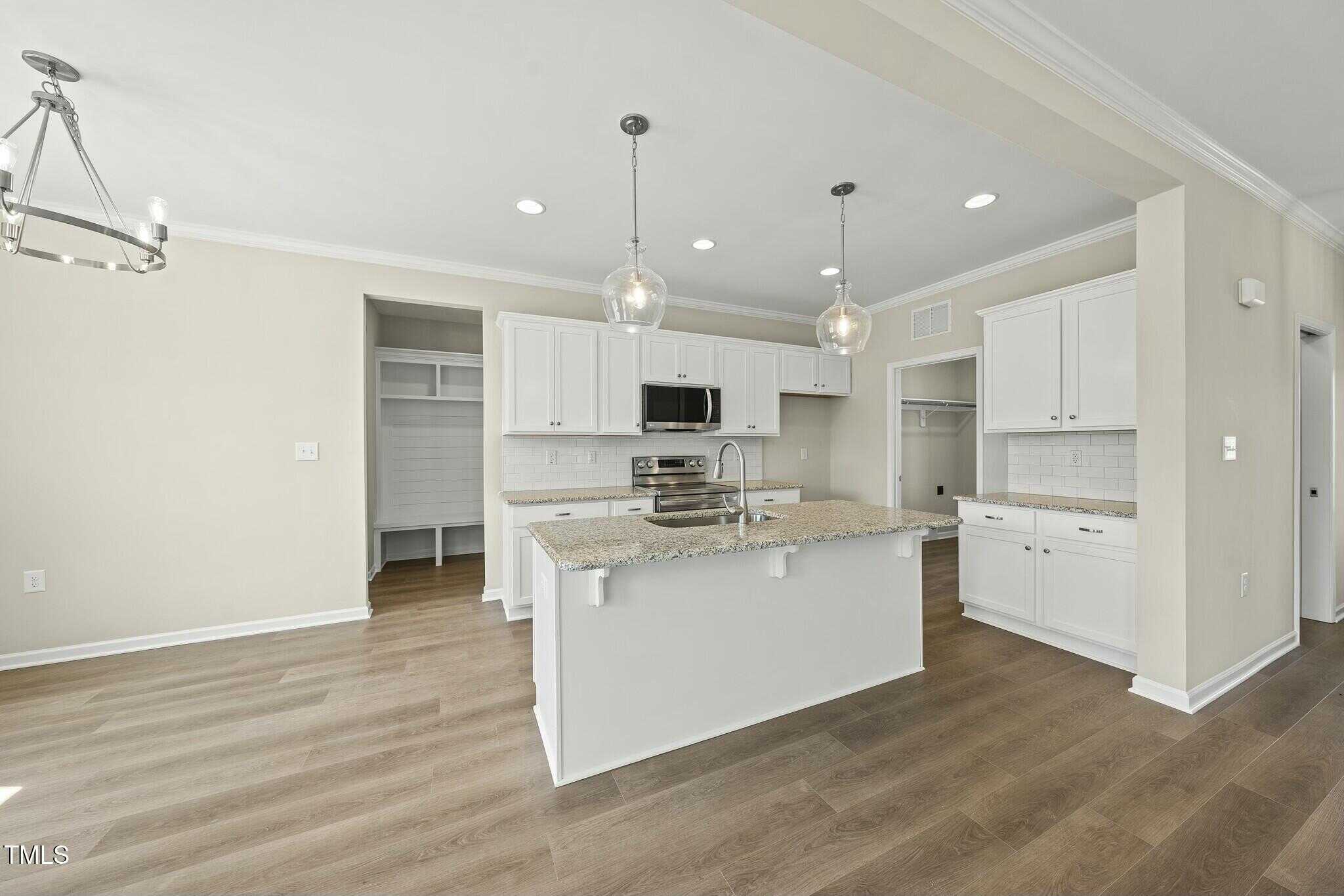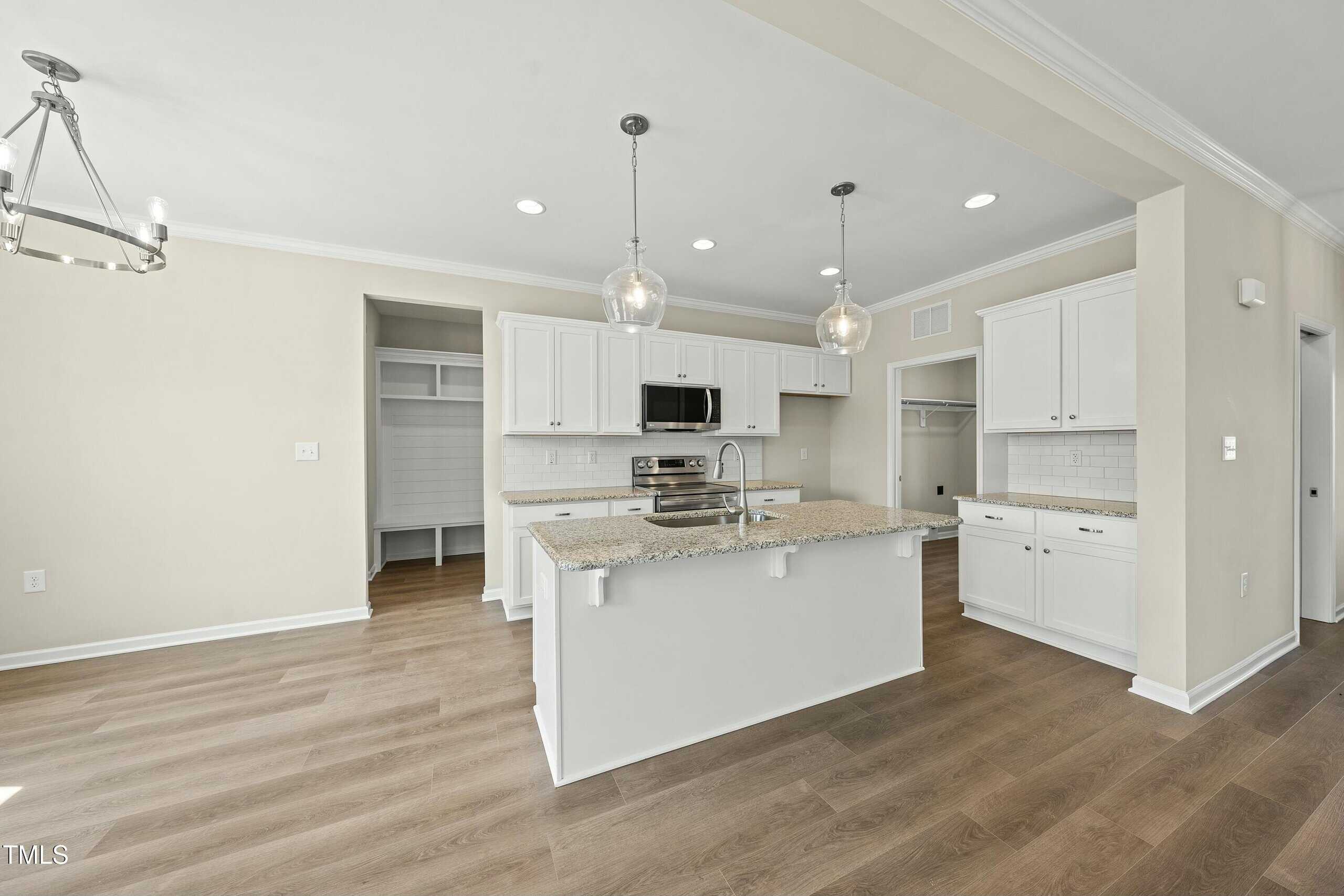 First floor primary with a dual vanity , water closet , custom wood shelving in the closets , this one has it all! Upstairs has 2 additional bedrooms , full bath and some walk-in storage.Sod front lawn! This is one of the last and Best lots in Brantley Ridge! Don’t Miss this MOVE-IN READY Home.