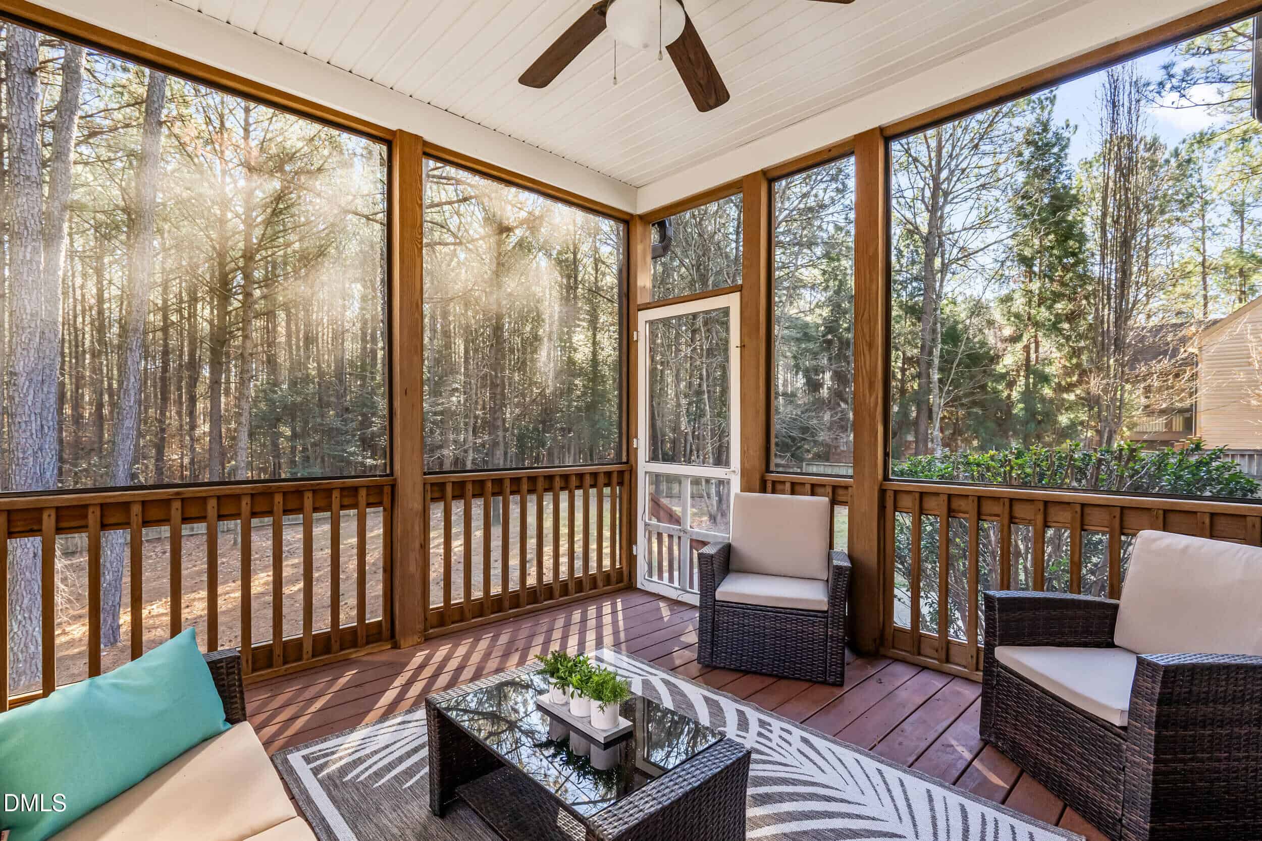 Outdoor living shines on the screened porch overlooking the private backyard, stone patio, and fire pit—an entertainer’s dream. The property backs up to a natural wood line, providing an added layer of privacy and serene tranquility that’s hard to find.