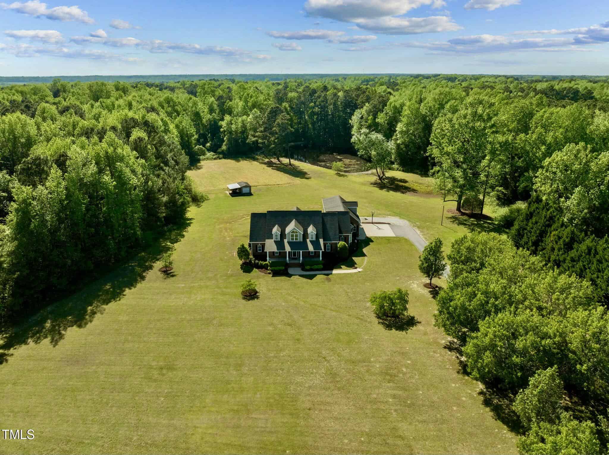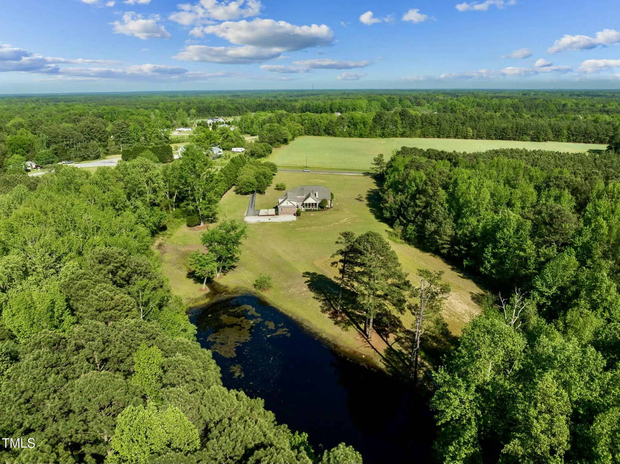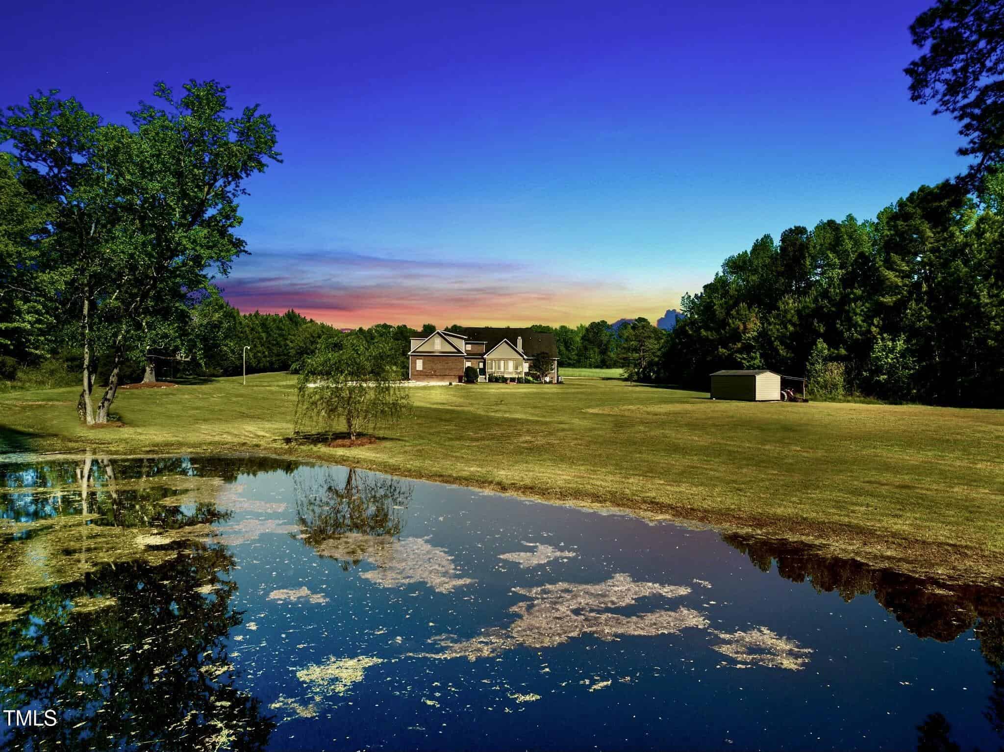 Spacious retreat boasts 4 bedrooms, 4.5 bathrooms and office/den with full closet. Massive 4929 square feet of living space on almost 8 acres of land with a private pond. Potential for a 5th bedroom, first floor master and second master upstairs, there’s plenty of room for everyone, formal dining room & breakfast area, experience the feeling of ampleness created by the split level floor plan lay out. Huge bonus room upstairs that is great for family entertainment. Elegant hardwood floors, carpet and stylish tile floors, chair rails, crown molding, trey and coffer ceilings, 2 stone fireplaces. The granite kitchen counters add a touch of luxury to the heart of the home. Oversized 2 car garage, laundry facilities, and a fabulous large screened covered A-frame back porch overlooking the extensive yard and private pond. Available parking for your convenience. Pre wired for generator. Imagine the potential – from creating a horse farm to a family compound or even a wedding venue, entertainment, RV parking, and more! No HOA! Nestled not far from the vibrant Wake Forest & Raleigh area, this property offers privacy and endless possibilities.