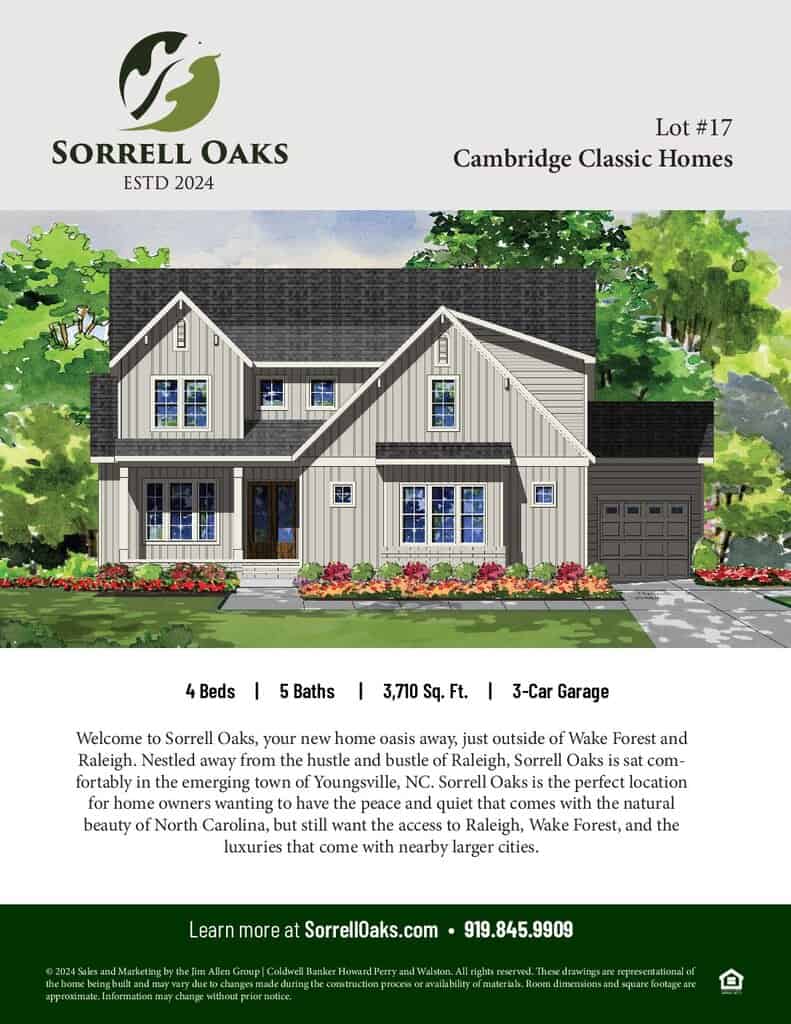 Builder Contribution Currently Available! Custom Built by Cambridge Classic Homes in Newly Established Sorrell Oaks! Privately Nestled on Private Pool Ready Lot! Main Level Primary & Guest Suite! 3 Car Garage! HWD Flooring Throughout the Main Living! Upgraded Lighting & Trim Package! Gourmet Kitchen offers Custom Cabinetry, Quartz Countertops, Large Quartz Island w/Flush Barstool Seating, Designer Tile Backsplash, SS Appls Incl GE Cafe 48” Duel Fuel Range, Custom Range Hood, Drawer Microwave & Dishwasher & Hidden Walk in Pantry! Primary Suite features Vaulted Ceiling, HWD Flooring & Foyer Entry! Luxurious Primary Bath with Tile Flooring, His & Her Vanities w/Quartz Tops, Freestanding Tub, Spa Style Tile Surround Shower w/Bench Seat & Huge WIC w/Direct Access to Laundry Room! Open Concept Family Room offers Tile Surround Fireplace w/Flanking Built ins & Large Sliding Glass Doors Opening to the Vaulted Screened Porch w/Brick Surround Fireplace & Grilling Patio! 2nd Floor Recreational Room, Loft, Large Flex Room & Spacious Secondary Bedrooms! Unfinished Walk in Storage Area & Sealed Crawl Space Foundation!