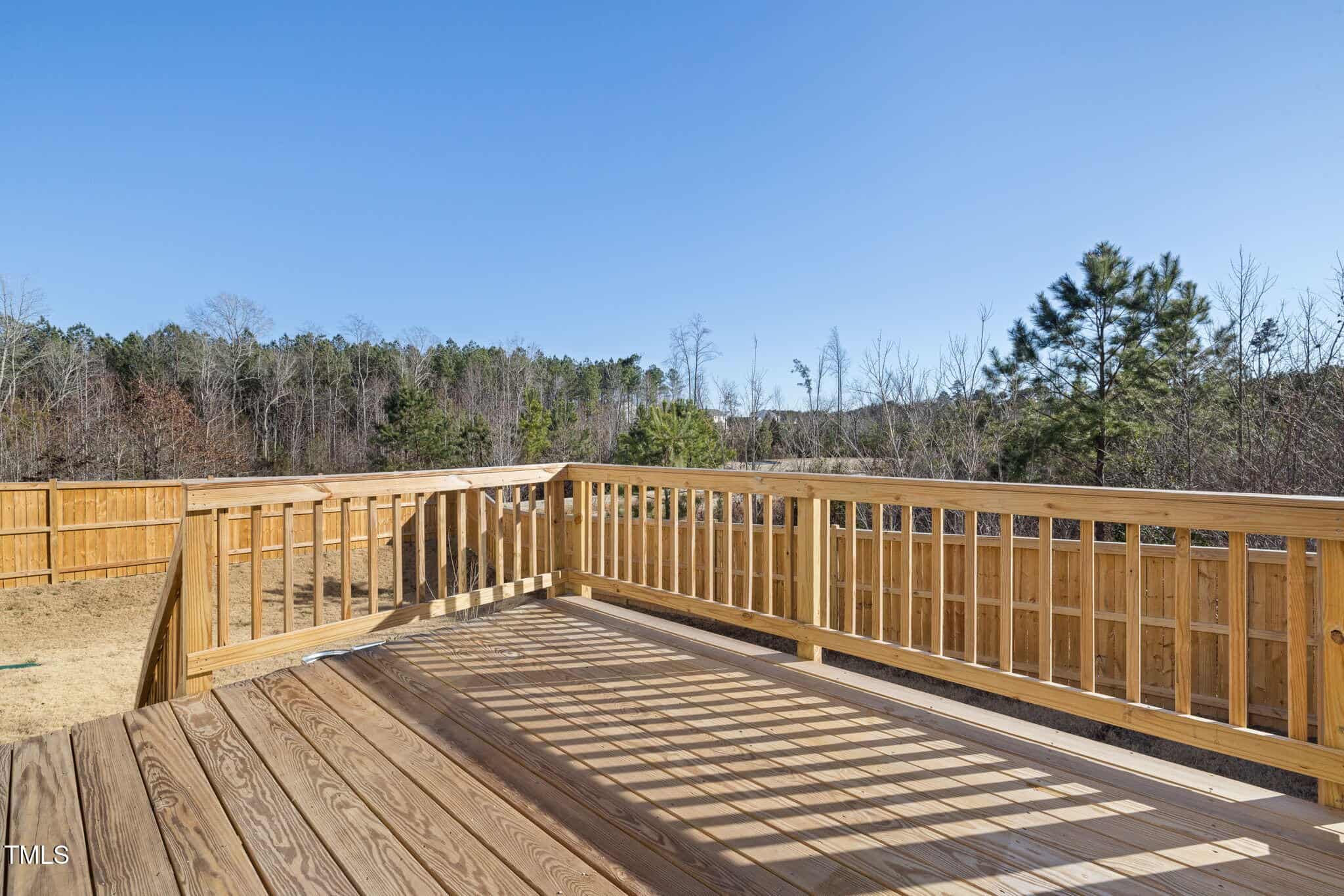 Outdoor Space: A spacious deck overlooking a private, fenced-in wooded backyard with endless potential for entertaining or relaxing.