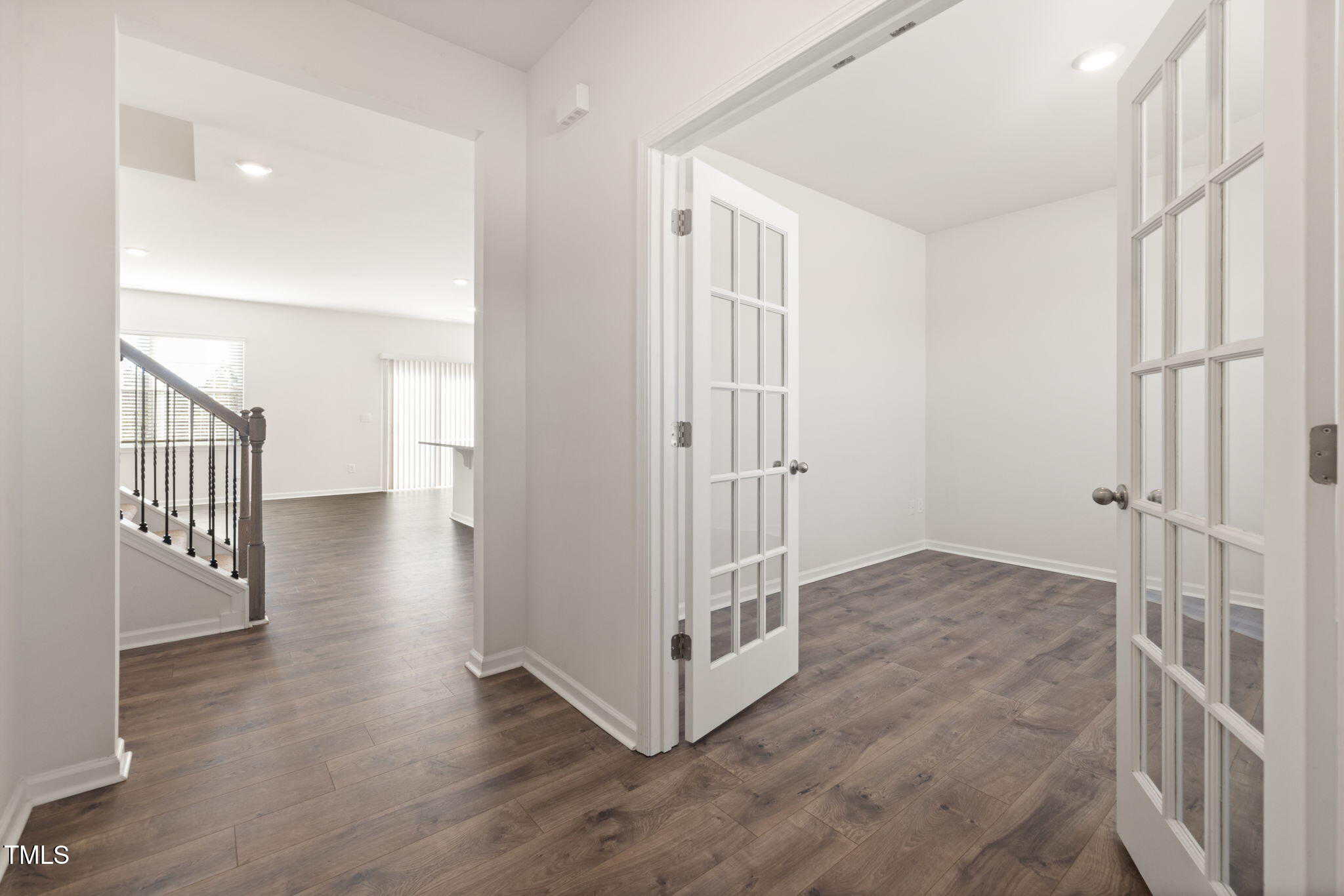 Main Level: A private study with elegant glass French doors, bonus room, and a full bathโperfect for visitors or multi-generational living.