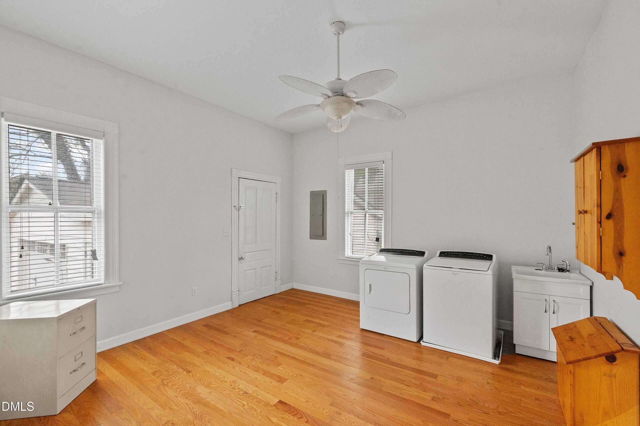HISTORIC DISTRICT. NEAL-WEBB Historic N Main ST in Louisburg, this home is so spacious, Captivating, Wide entry foyer, Beautiful Front Porch. Central heat and air, Natural gas heat Elec for air, dual systems. Kitchen has been updated to all of the modern convinces’, tons of beautiful cabinets, breakfast bar, Granit counters, Gas range, stainless steel appliances, refrigerator remains, wood floors. enormous laundry room, washer and dryer remain; There’s is room to add Freezer cupboards, game table.