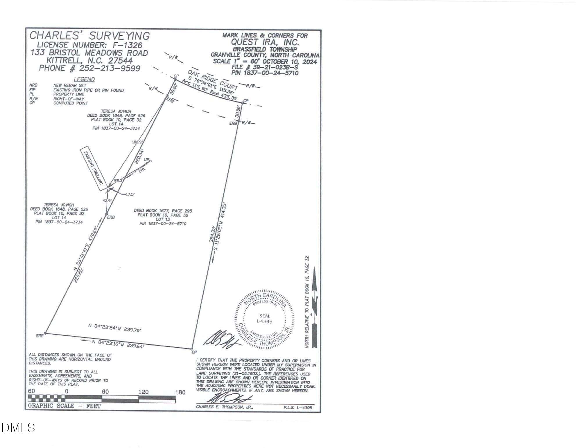 $48K for 1.75 AC / Lot 13 near end of Cul-de-sac in Big Oak Farms Subdivision, on Royal Oak Drive In Granville Co (has Franklinton mailing address) near Tar Rover Elementary School. Per existing survey, around 115′ of road frontage x 444′ x 239′ x 440′.