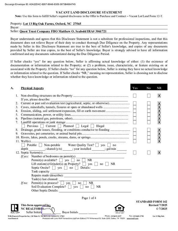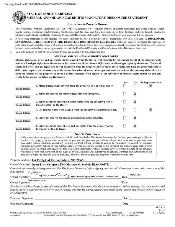 $48K for 1.75 AC / Lot 13 near end of Cul-de-sac in Big Oak Farms Subdivision, on Royal Oak Drive In Granville Co (has Franklinton mailing address) near Tar Rover Elementary School. Per existing survey, around 115′ of road frontage x 444′ x 239′ x 440′. Former encroaching buildings have been torn down & Seller in process of hauling off debris. Mainly wooded lot. Will need well and septic. Offers can be contingent upon Buyer getting a perk test as none have been completed. On gravel Road , privately maintained, No road maintenance agreement in place. Site Built home / Modulars / SINGLE WIDES & DOUBLE WIDES welcomed! CASH or pre qualification letter if getting bank loan.