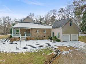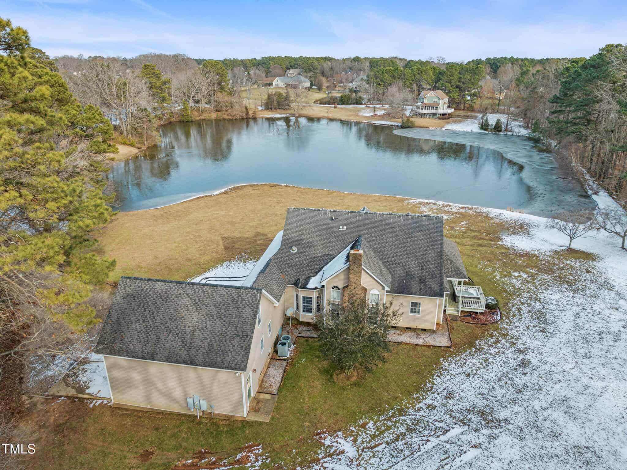 Dreaming of a private estate at a reasonable price? Discover the potential of this charming 2-story, 3-bedroom, 2.5-bath home, nestled on a stunning 6.4-acre waterfront lot with breathtaking sunrise views. Start your mornings on the rocking chair front porch, overlooking the serene 3.6-acre pond. This home, thoughtfully priced to allow for your personal updates and renovations, offers a rare opportunity to create your dream retreat. The gently sloping lot provides ample outdoor space and endless possibilities for outdoor enjoyment and recreation. Additional features include 2-separate garage areas, perfect for vehicles or a workshop, and a spacious walk-up attic offering generous storage or future potential. Located at the Wake/Granville County line north of Purnell Road and west of US 1, this home is serviced by septic and a private well, combining the best of rural and suburban living! This home is offered for sale with all contents included at closing. With its prime location and incredible setting, this home is ready to become your perfect escape. Don’t miss your chance to experience the possibilities. Schedule your visit today and let this one-of-a-kind property inspire your vision!