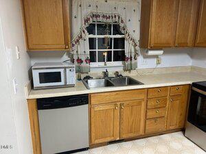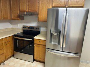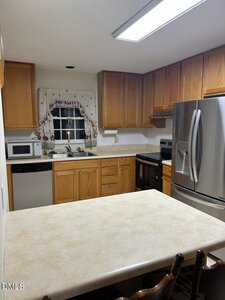 The large kitchen features an abundance of cabinets, generous counter space, and all appliances convey—-ready for move-in ease.