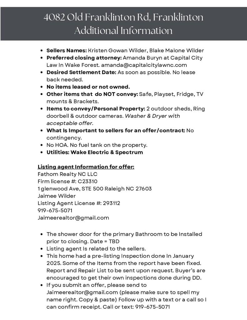 Escape to your own private retreat at 4082 Old Franklinton Road! This charming 3-bedroom home offers 1240 sqft of cozy living space on 1.5 unrestricted acres, perfect for those looking to enhance their property!