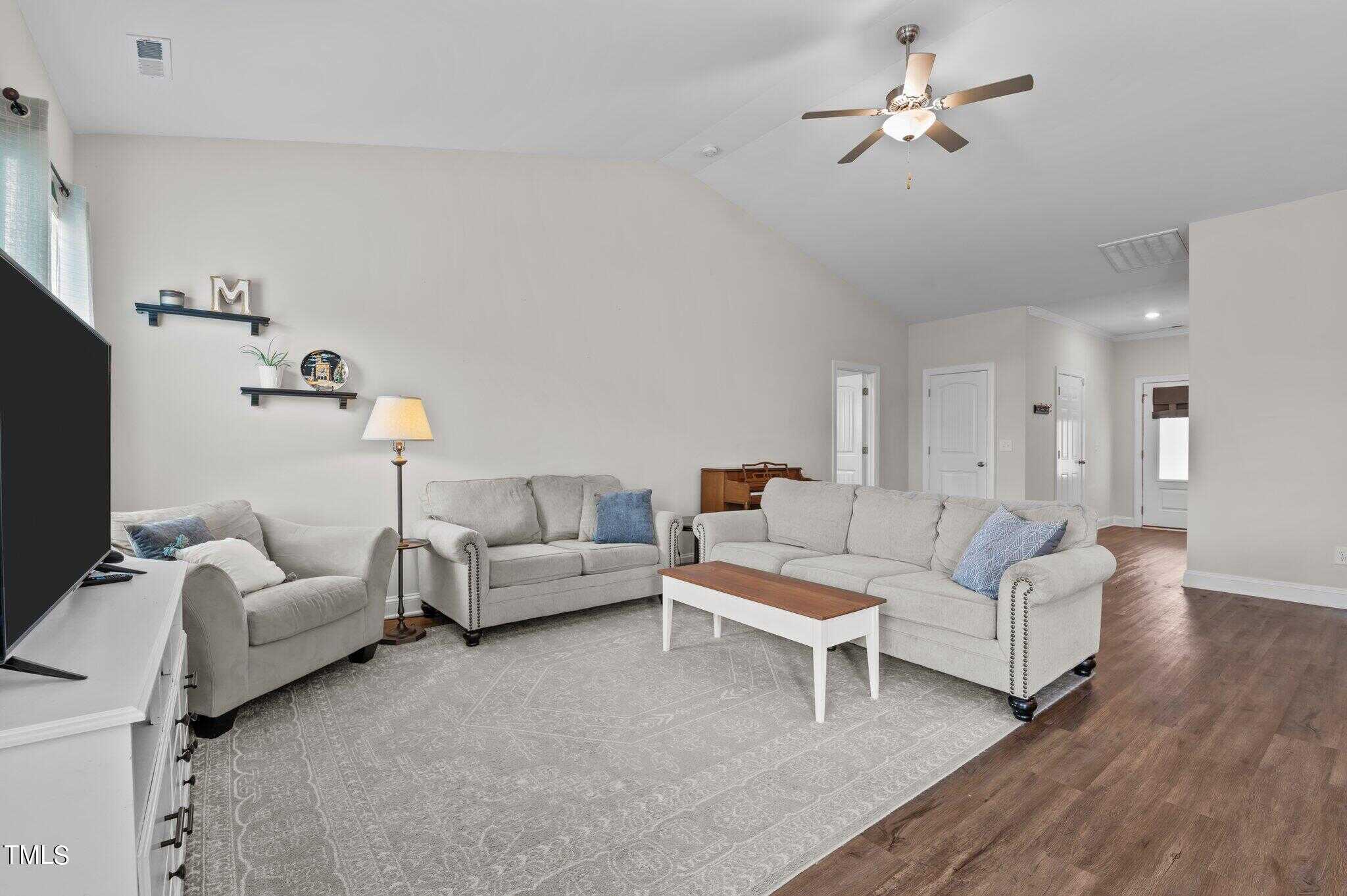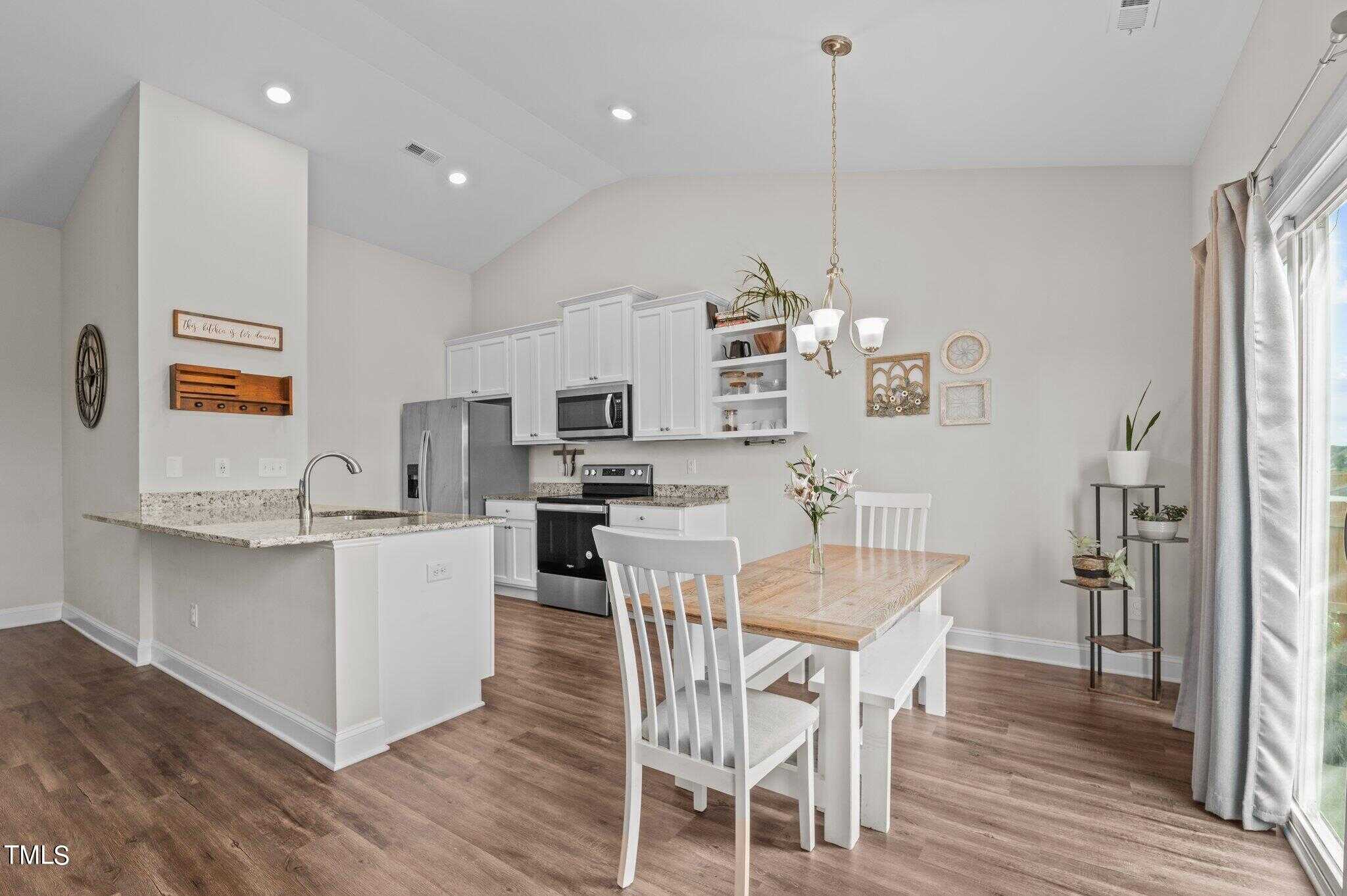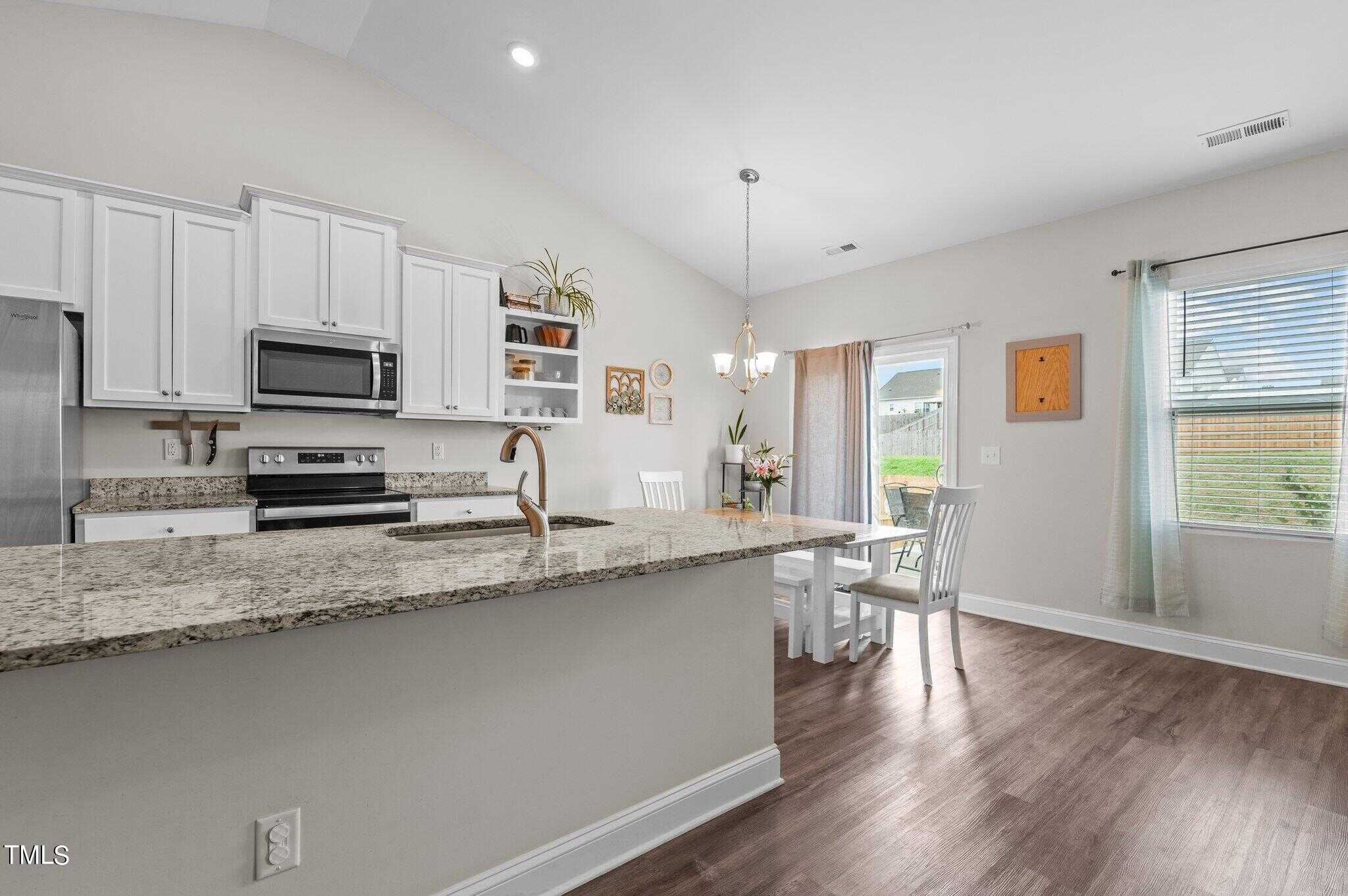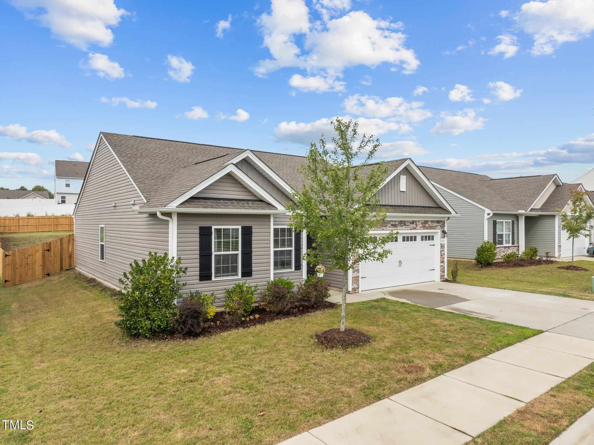 Charming ranch plan with 3 bedrooms and 2 baths with a fenced in yard in Legacy in Youngsville. Enjoy open concept living and kitchen area and split floorplan for privacy. Cathedral ceilings in family and owner’s suite with a large walk in closet. Refrigerator conveys.