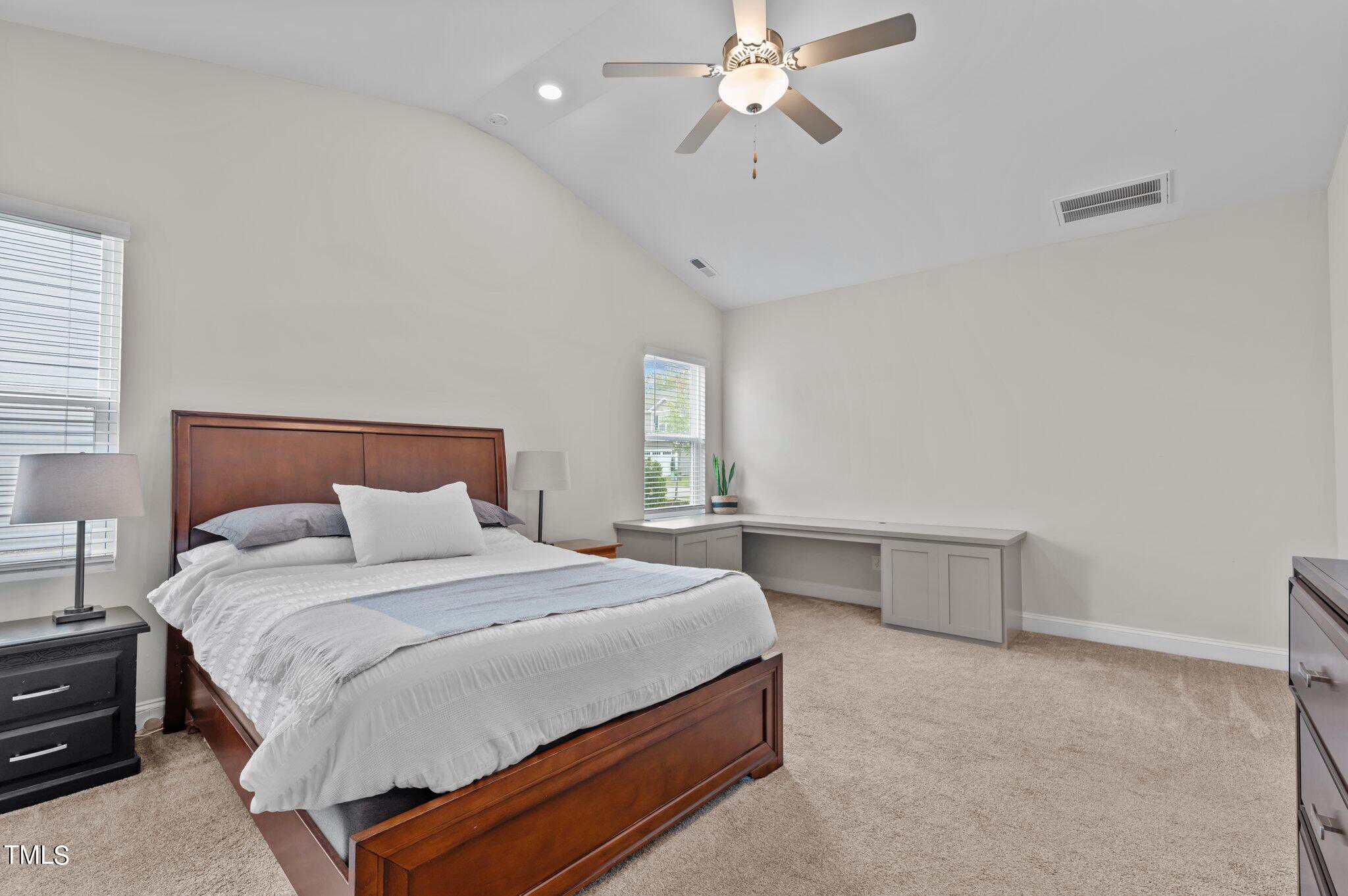 Cathedral ceilings in family and owner’s suite with a large walk in closet.