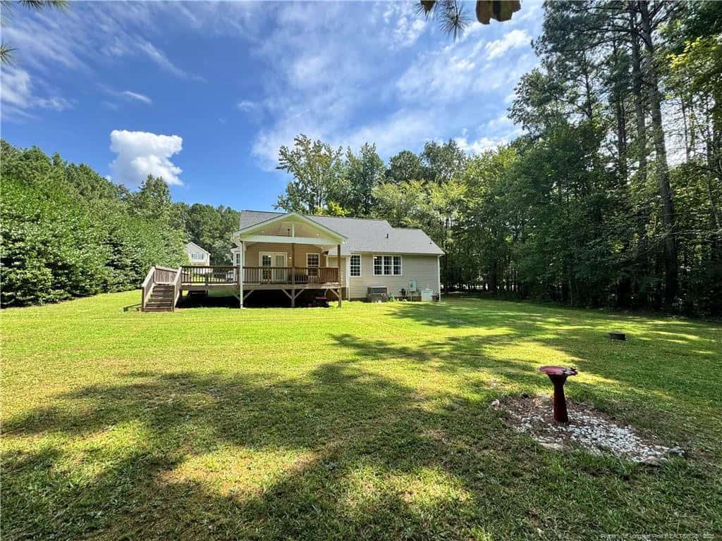 This charming 3-bedroom, 2-bath ranch has all the space and comfort you’ve been searching for. Inside, an open kitchen flows seamlessly into the dining room — perfect for entertaining. The nearly 1-acre private corner lot is surrounded by beautiful landscaping and privacy trees. Enjoy peaceful mornings on the quaint covered front porch, or relax on the large covered back deck that wraps around the side of the home. Washer and dryer convey, plus a newer roof and recently pumped septic offer peace of mind. Located just 20 minutes from Wake Forest, you’ll love the quiet setting outside city limits — and with no HOA, you can truly make this place your own.