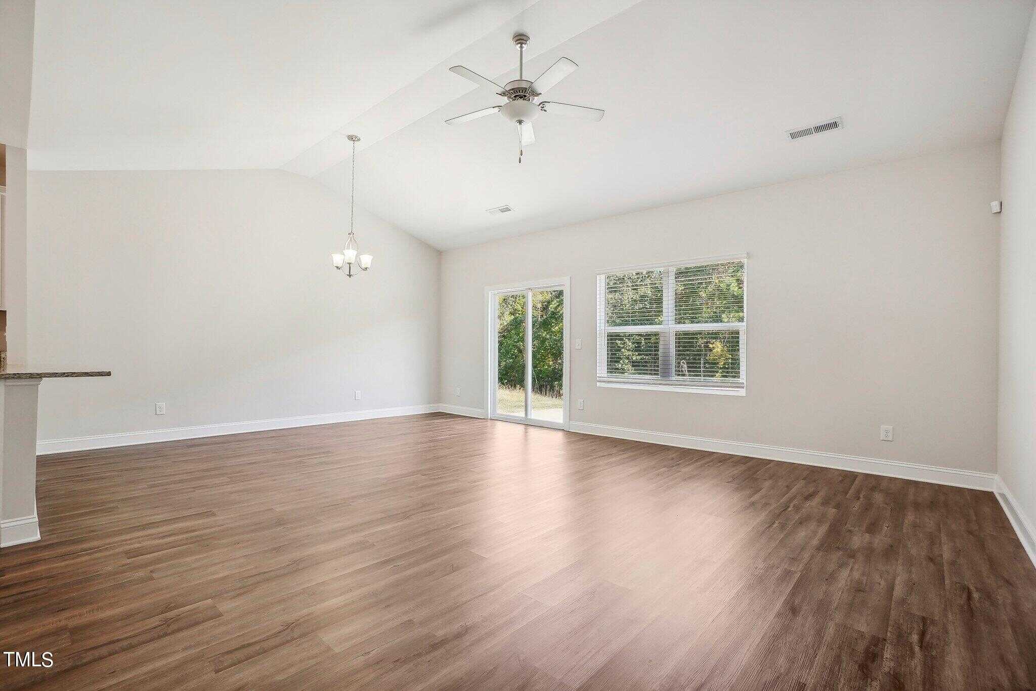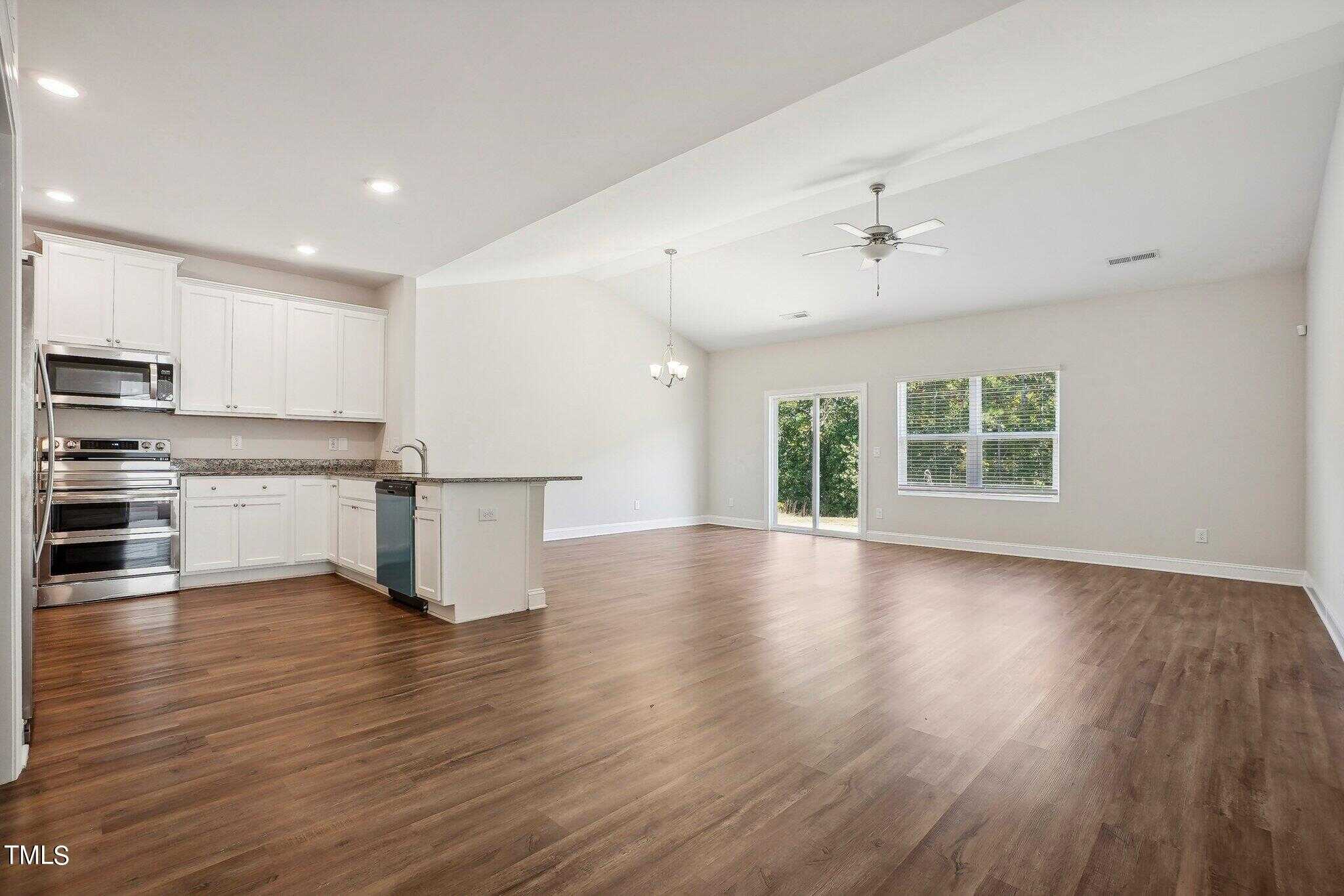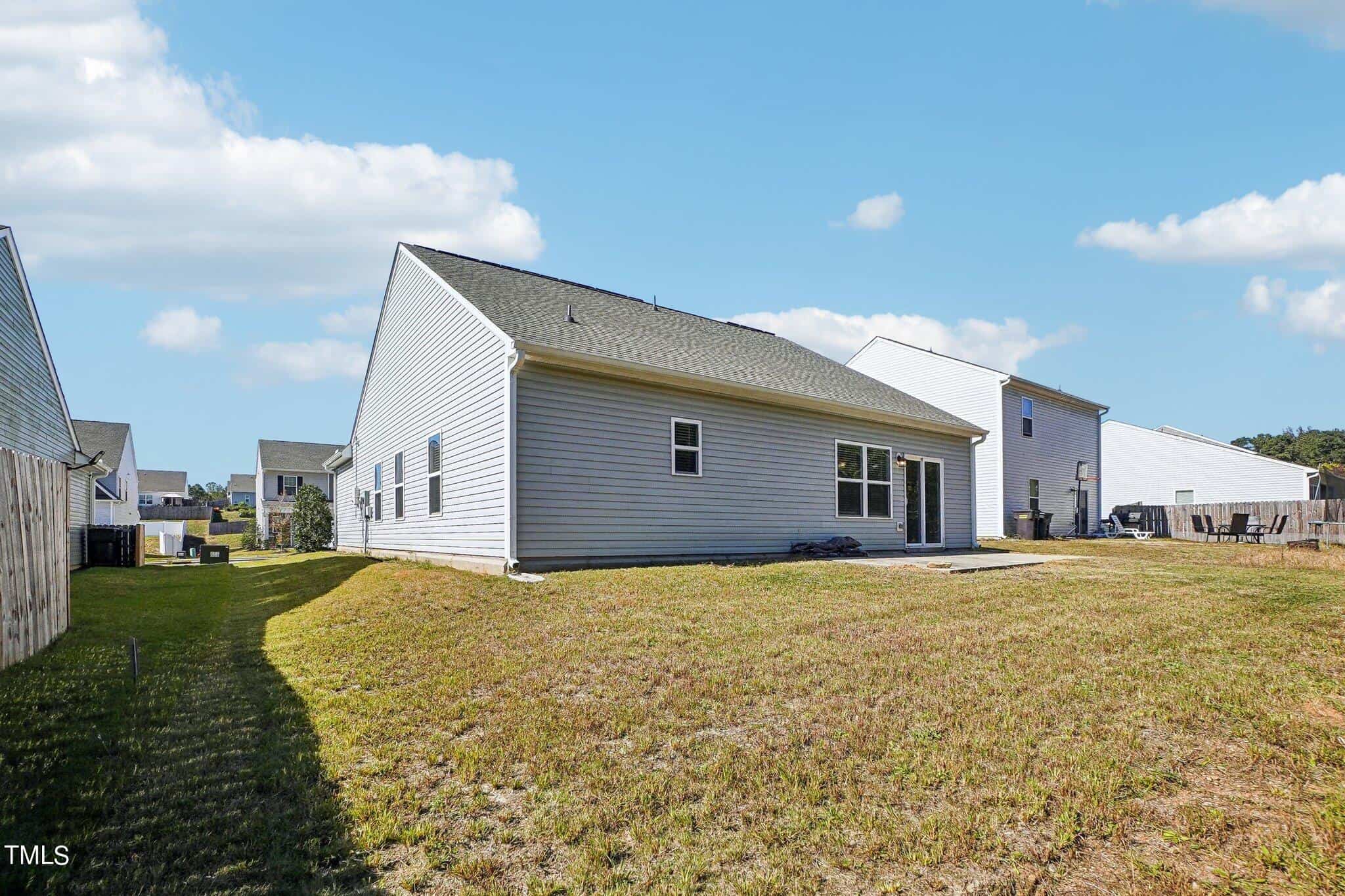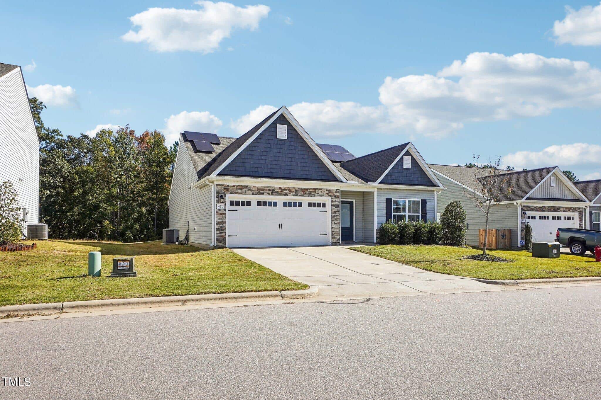 Welcome to this charming 3-bedroom, 2-bathroom ranch-style home, where comfort meets elegance in an open-concept floor plan. Step inside to a spacious living area with soaring ceilings and abundant natural light that creates an inviting, airy atmosphere perfect for relaxing or entertaining. The expansive kitchen is a chef’s delight, featuring granite countertops, sleek stainless steel appliances, and ample cabinetry for all your culinary needs. The primary bedroom offers a private retreat with a luxurious en-suite bath, complete with a walk-in shower and an oversized walk-in closet for maximum storage and convenience. Two additional bedrooms provide plenty of space for guests, or a home office setup. Solar panels added for extra energy efficiency! Just a short 7-minute drive from the heart of Downtown Youngsville, this home is conveniently close to local dining, shopping, and more. Enjoy the perfect blend of suburban tranquility and urban convenience in this beautiful property!