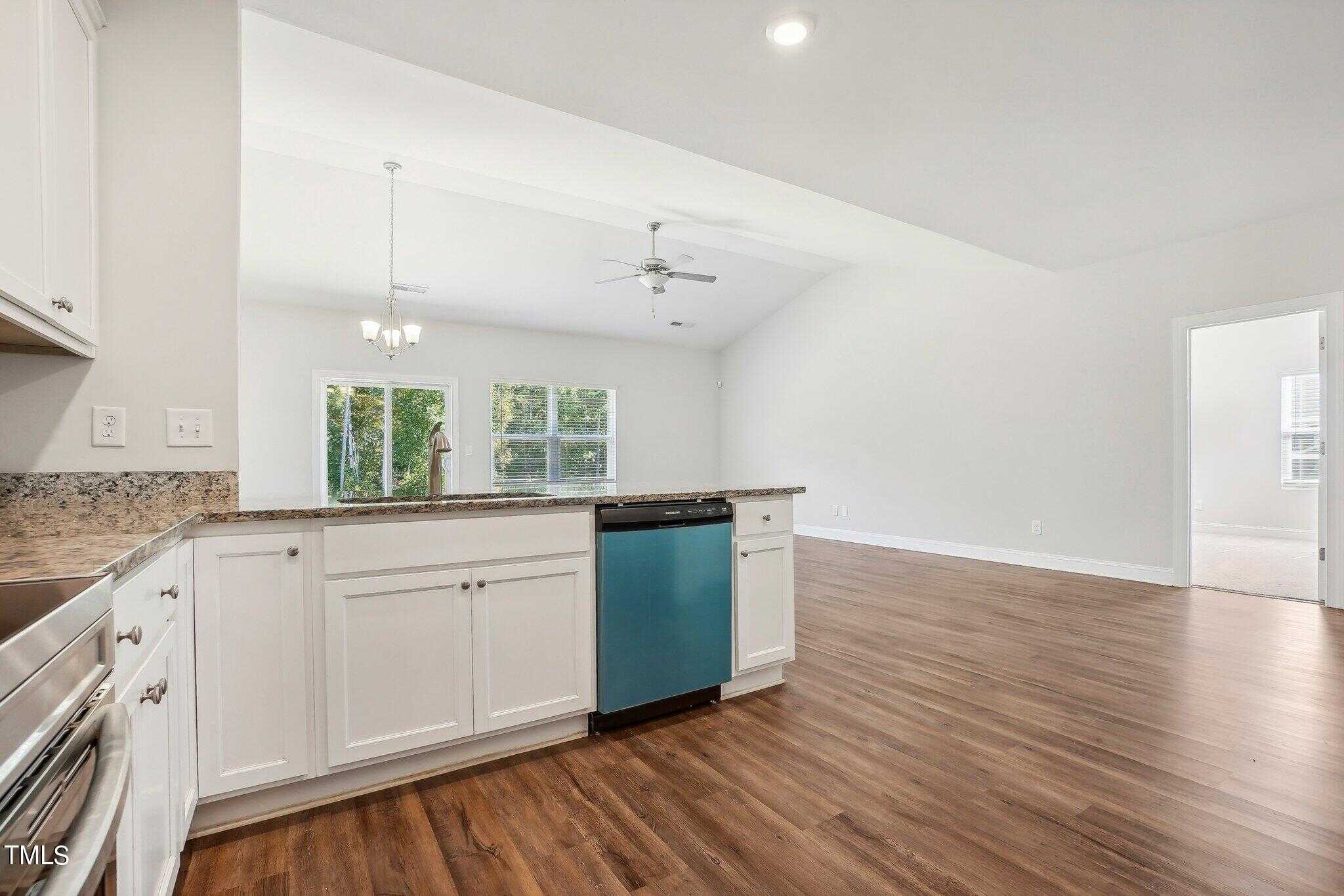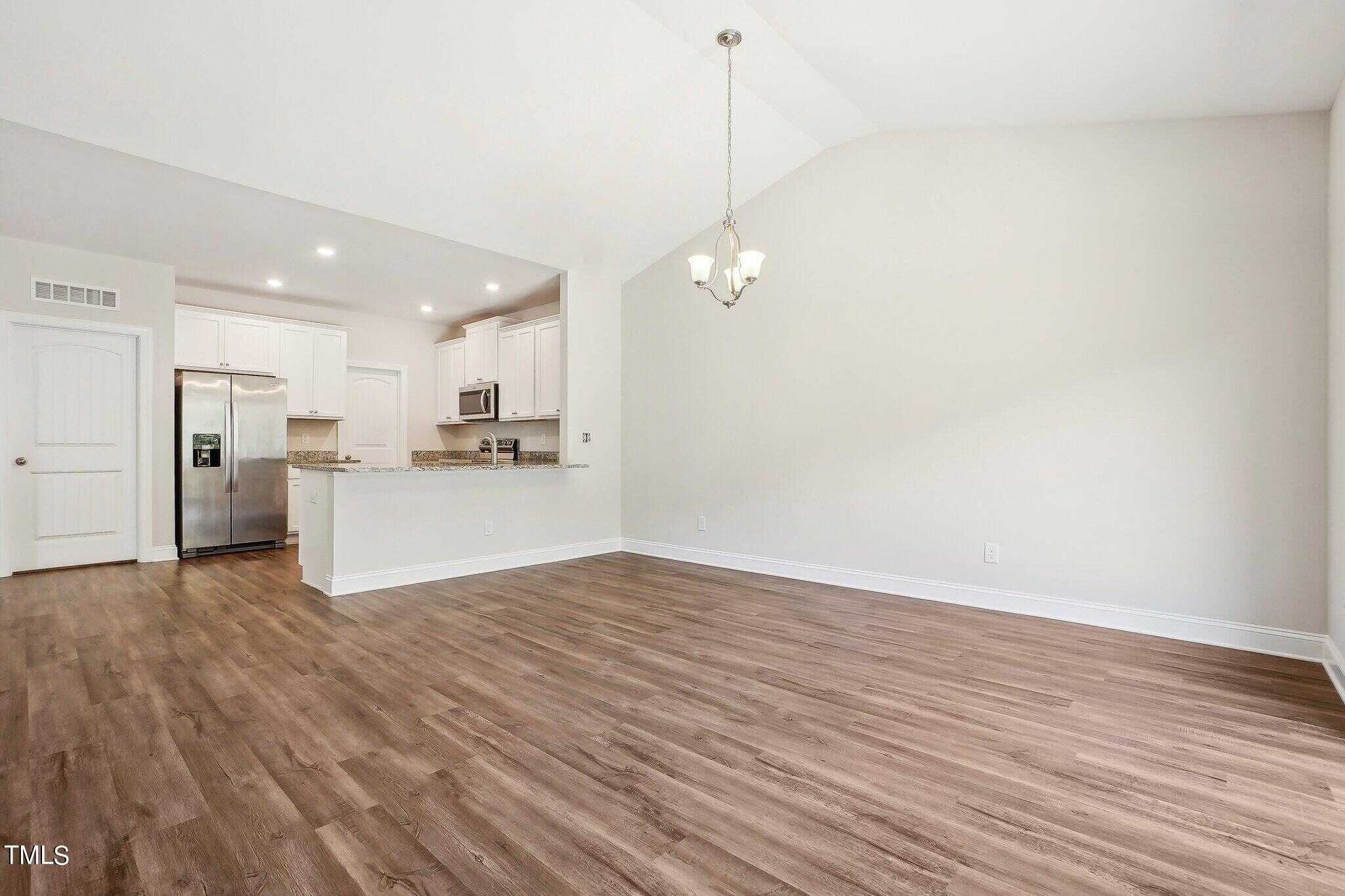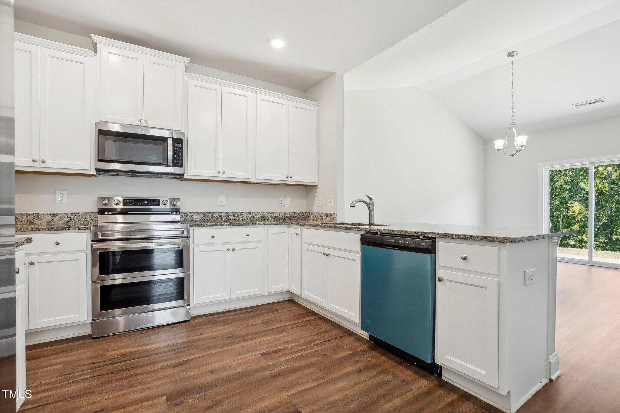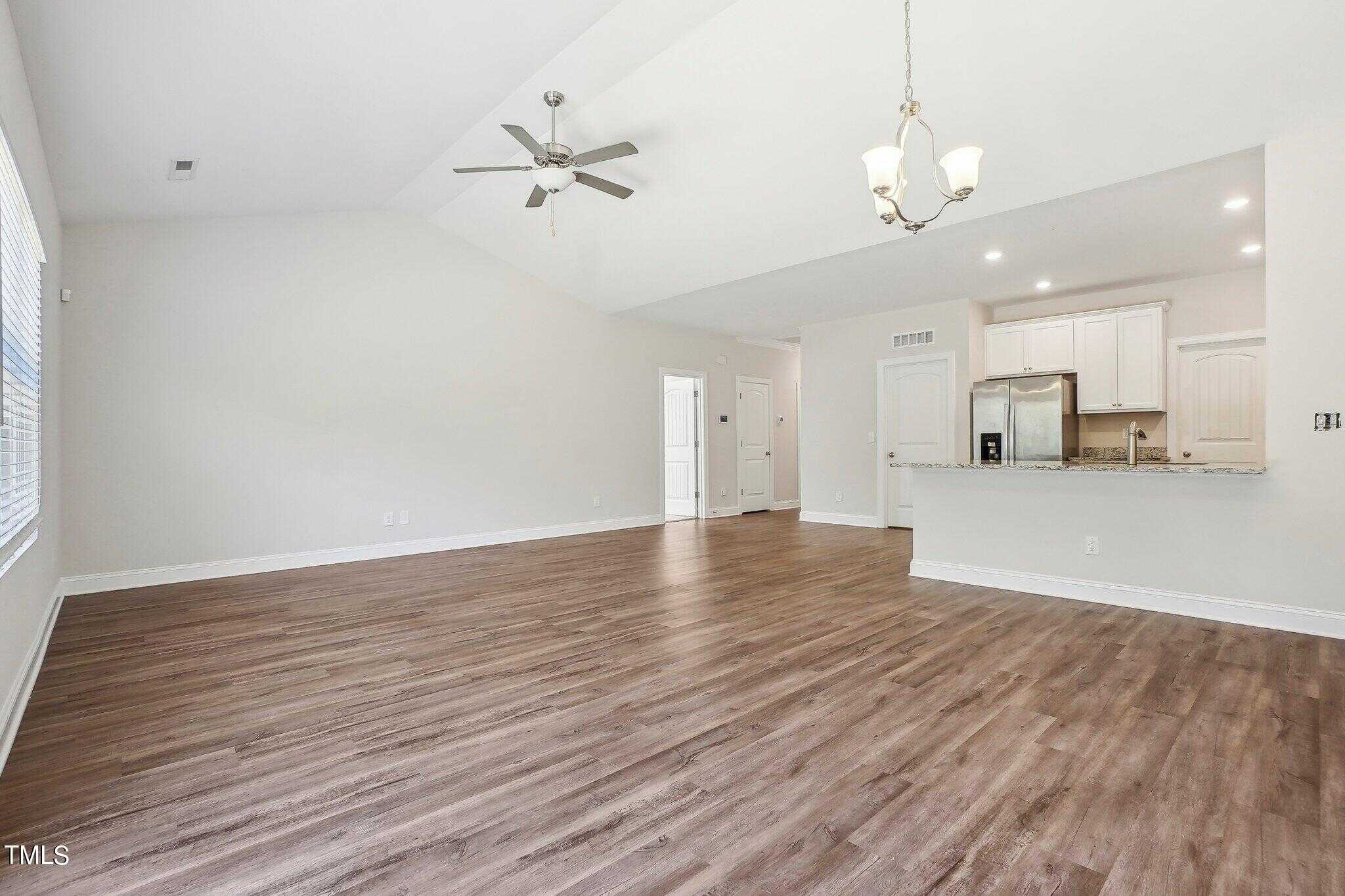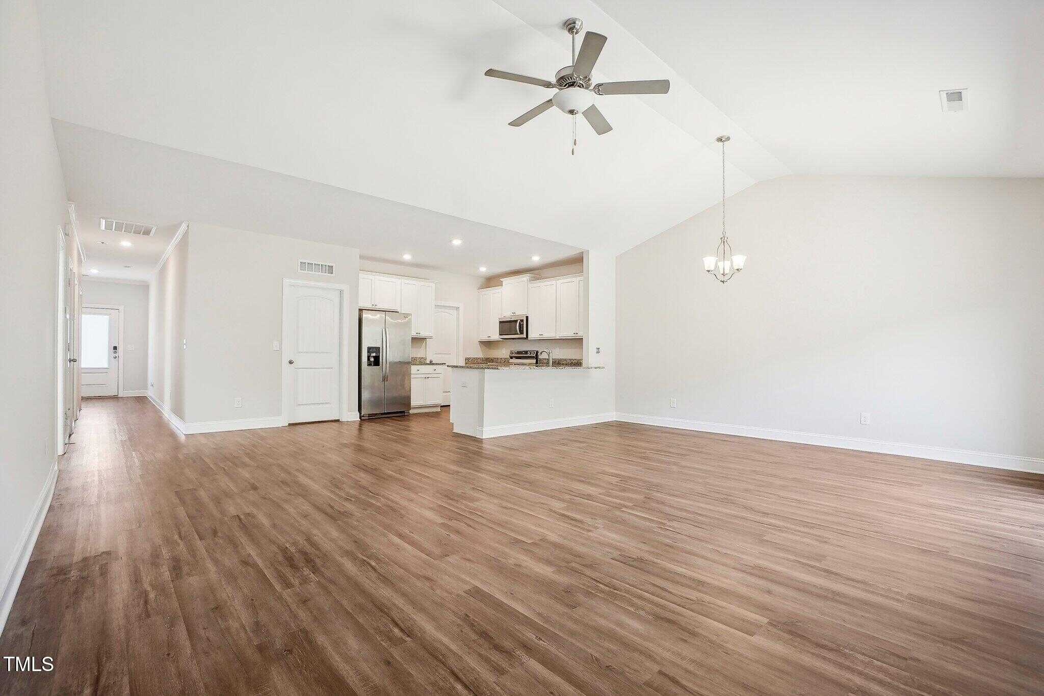 Welcome to this charming 3-bedroom, 2-bathroom ranch-style home, where comfort meets elegance in an open-concept floor plan. Step inside to a spacious living area with soaring ceilings and abundant natural light that creates an inviting, airy atmosphere perfect for relaxing or entertaining. The expansive kitchen is a chef’s delight, featuring granite countertops, sleek stainless steel appliances, and ample cabinetry for all your culinary needs. The primary bedroom offers a private retreat with a luxurious en-suite bath, complete with a walk-in shower and an oversized walk-in closet for maximum storage and convenience. Two additional bedrooms provide plenty of space for guests, or a home office setup. Solar panels added for extra energy efficiency! Just a short 7-minute drive from the heart of Downtown Youngsville, this home is conveniently close to local dining, shopping, and more. Enjoy the perfect blend of suburban tranquility and urban convenience in this beautiful property!