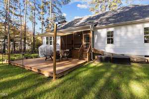 Covered Front Porch AND 16.×10 Screened Back Porch overlooks 20.6×17.8 Deck. Aluminum Fencing Surrounds big open Back yd & 17×10.10 Bld. Lot extends into surrounding Woods. 355′ Road Frontage on Gresham Drive & S Greg Allen Way. On Well & Septic, Around $300 Annual HOA Fees. NO CITY TAXES! Wont’s last long