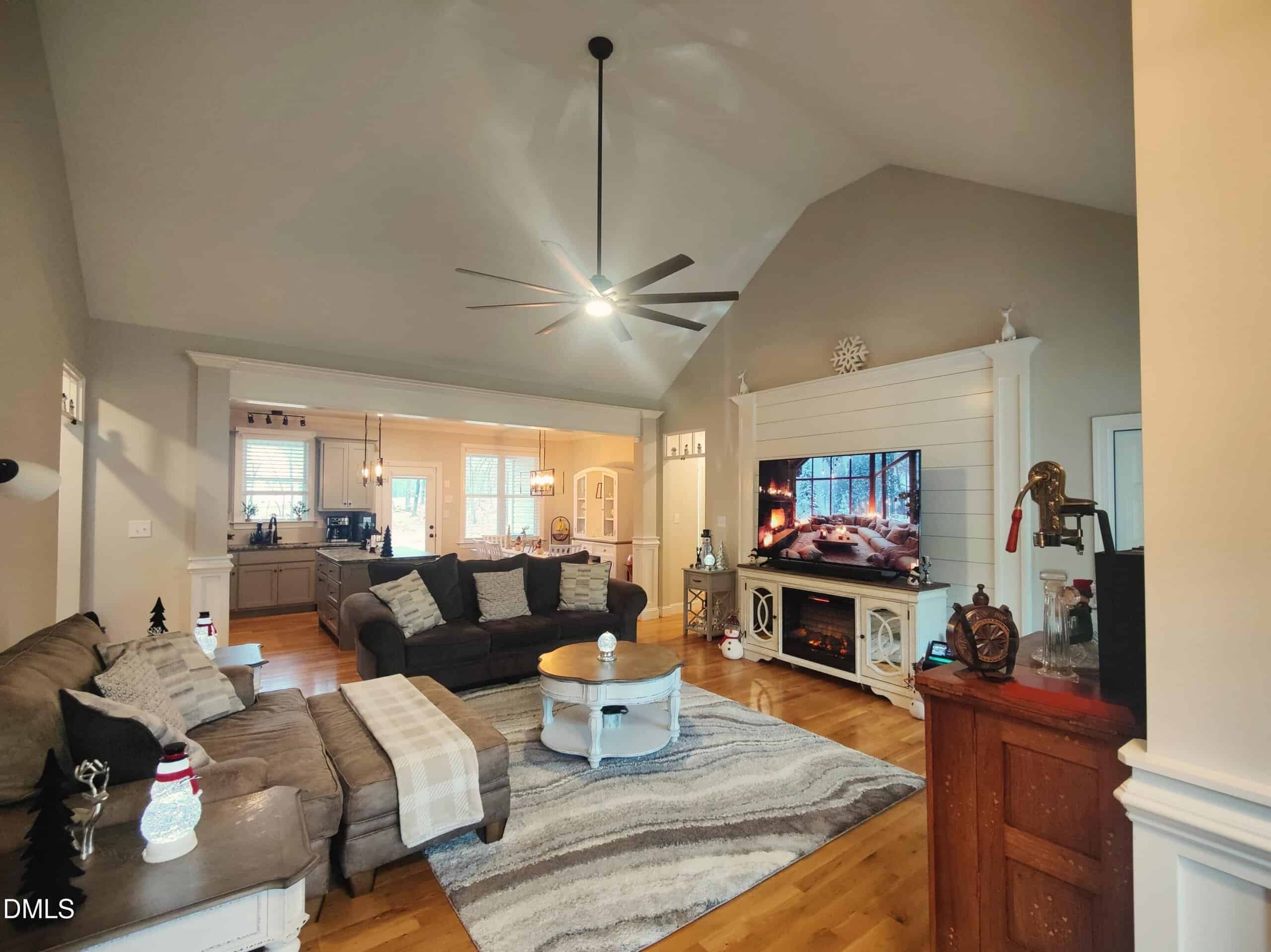 This Single-Level Split-Bedroom Floorplan Ranch will impress You if you’ve been disappointed by the Build Quality of many recently crafted homes. Situated at the end of a cul-de-sac for privacy, and with .92 acre of property, you’ll love the peace you’ll feel here. You’ll find neat little touches all around, from Vaulted Ceilings to Transom Windows, and Wide Window Blinds to Gutter Guards. The seamless Open Floorplan is warm and inviting for both entertaining and easy living. As you pass through the LOVELY Front Door, you’ll find yourself in an Entry Foyer open to a Living Room with elegant trim details and a shiplap accent wall. Every detail has been carefully considered, from the Wood and Solid flooring that grace the main Living Areas to the Quality of Light afforded Homes fortunate to be West-Facing. The Kitchen boasts striking Granite Countertops, Custom Cabinets, and Stainless-Steel Appliances, all illuminated by Designer Lighting, as well as a Center Island with Seating that adjoins the Dining Area. In the center of both is a door to the Covered Rear Porch to continue the Living Area Outside. The Large Primary Suite is located at the Right Rear of the Home, away from the World, featuring an ensuite Bathroom with Dual Separate Vanities that wraps around to a convenient Walk-In Closet, and continues to the thoughtfully connected Laundry Room. The other 2 Bedrooms are to the Left of the Common Area, affording Privacy for All. As a HUGE bonus, You’ll find an unfinished walk-up Second Floor accessed From the Living Room that adds 475 Square Feet with unlimited potential. Outdoors, the Covered Front Porch welcomes guests in style, while the Rear Porch provides a serene setting to overlook the private, wooded 0.92-acre Back Yard. A 2-Car Side-Entry Garage rounds out the Thoughtful Touches You’ll find at 4334 N Greg Allen Way.