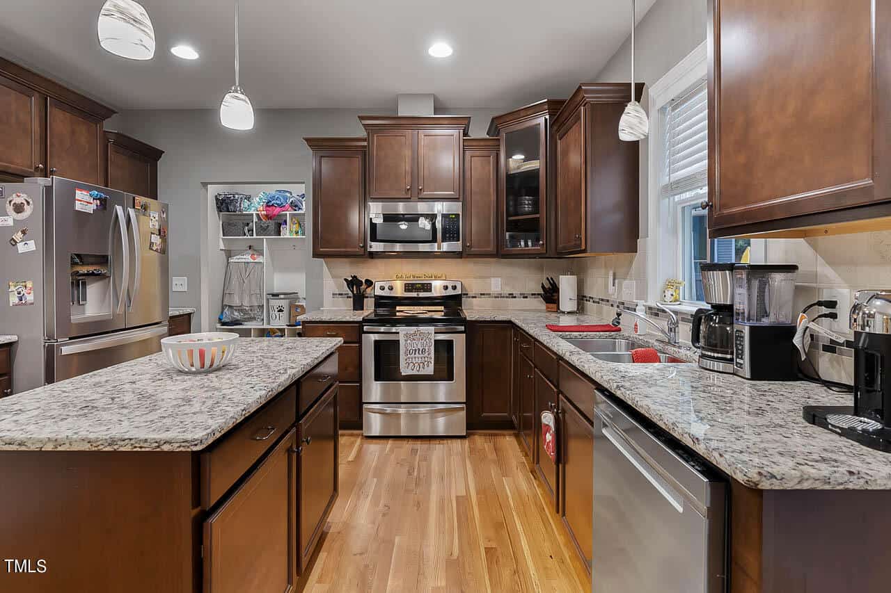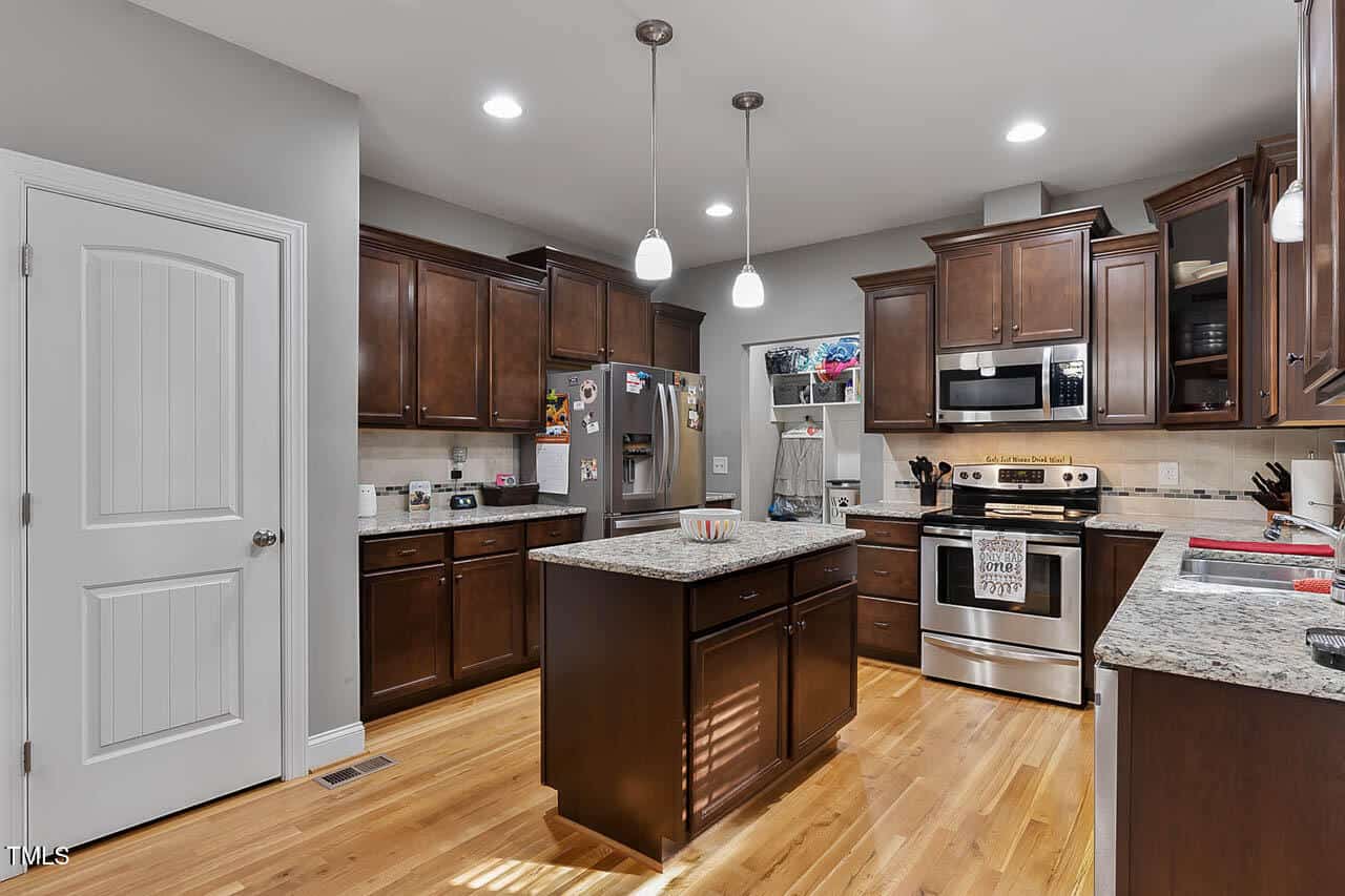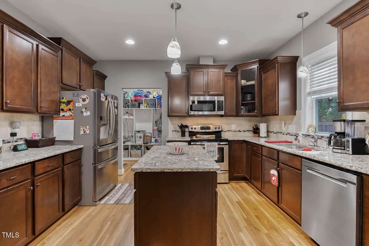 A Must-See! This stunning custom-built home features an open kitchen with granite countertops, an oversized island, and a butler’s pantry, perfect for entertaining. Enjoy the elegance of hardwood floors and crown molding throughout. The formal dining area and cozy living room with a gas fireplace add to the charm.