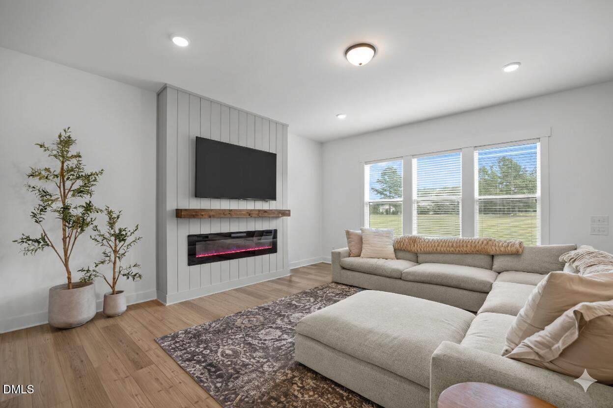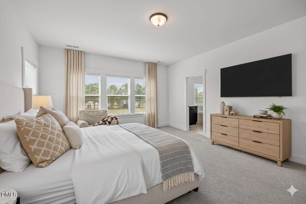 Better than new and loaded with upgrades! Built in 2023, this 4-bedroom, 4-bath home offers 3,271 sq ft of thoughtfully designed living space on a .69-acre homesite with a convenient 3-car garage. The main floor includes a bright home office/study with glass French doors, plus a private guest/in-law suite with a full bath featuring an oversized walk-in shower and large-format tile surround. The chef’s kitchen is a showstopper with painted flat-panel cabinetry, brushed gold hardware, quartz countertops, subway tile backsplash, and a center island illuminated by clear glass globe pendants. Stainless Whirlpool appliances include an electric cooktop with a stainless hood. The kitchen flows seamlessly into the casual dining area and the spacious family room, anchored by a modern linear electric fireplace with stained wood mantel and shiplap accent wall. Luxury vinyl plank flooring extends throughout the main level for style and durability. Upstairs, the owner’s suite retreat features dual walk-in closets and a spa-inspired bath with dual quartz-topped vanities, soaking tub, and separate tiled shower. A generous loft area is perfect for a playroom or media space, plus there’s a flex room, two secondary bedrooms, and two additional baths. A large screened porch overlooks the sprawling backyard and is perfect for cool autumn evenings. Located in desirable Carter’s Place, this home is ready for you to move in and enjoy. Come experience it in person–schedule a private showing today!