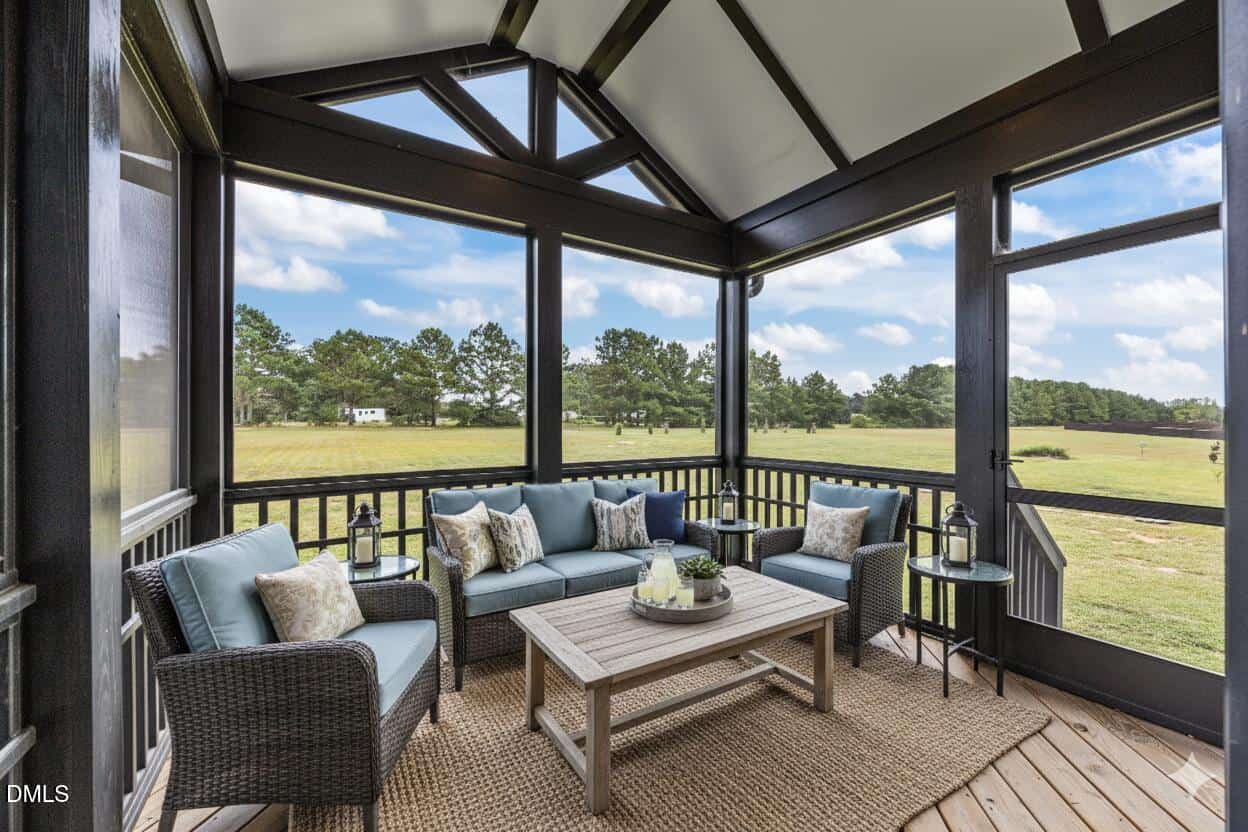 A large screened porch overlooks the sprawling backyard and is perfect for cool autumn evenings.