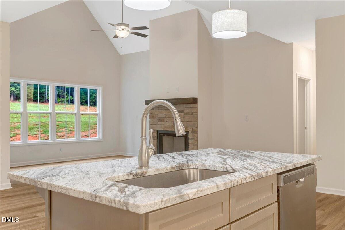 Step inside to an inviting open floor plan with soaring vaulted ceilings that create a bright, airy atmosphere. The gorgeous kitchen flows seamlessly into the living and dining spaces, making it perfect for both everyday living and entertaining.