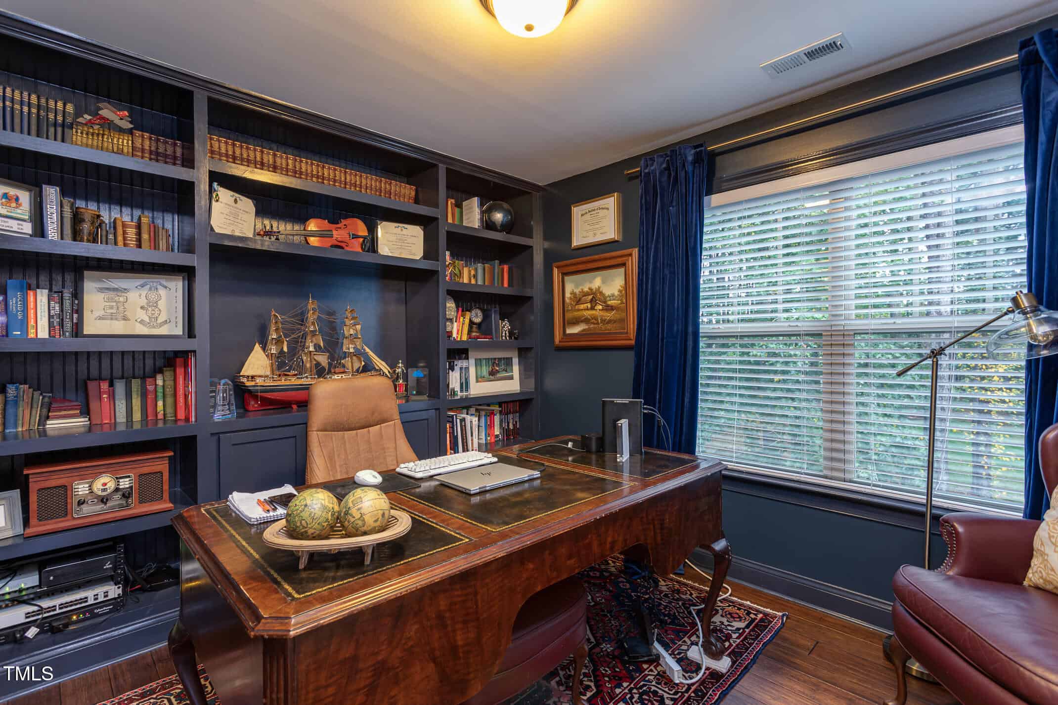 Upstairs offers a dedicated office with custom built-ins, bonus room, bedroom and full bath,plus two walk-in attics for storage or future expansion.