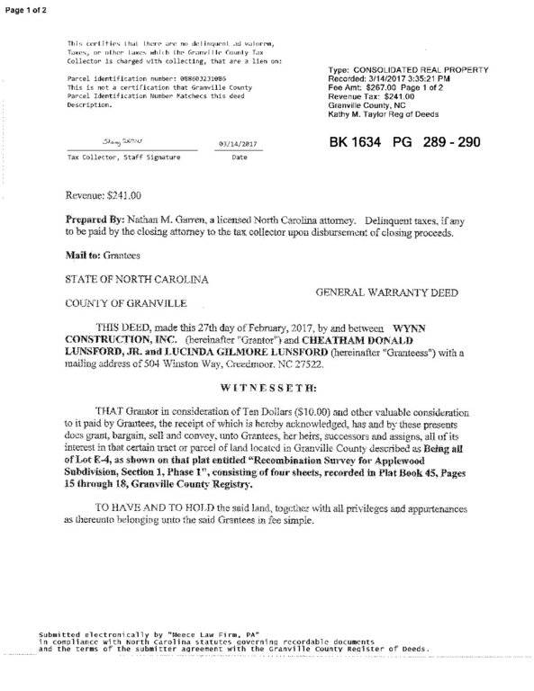 18% above the Granville County median ($196.00)