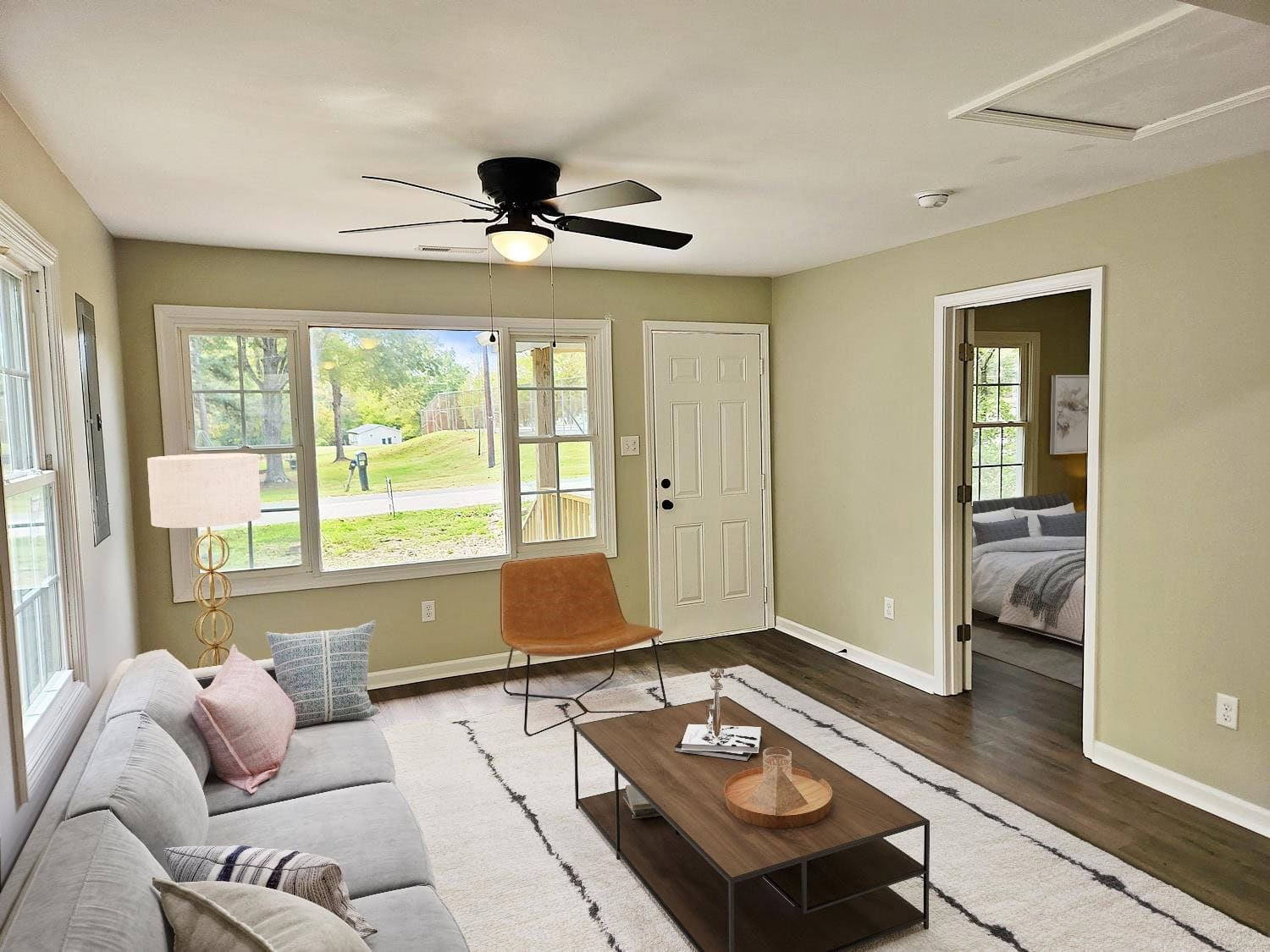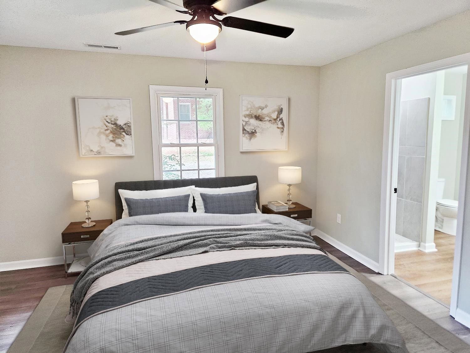 Wonderful charming, remodeled and renovated home near downtown Oxford. New roof, New HVAC, New Kitchen, flooring, paint, fixtures. Updated electric and plumbing. Great floorplan with private bath for each bedroom and half bath for common area. Walk in closet for Owners bedroom. Livingroom/ Dining room combo. Kitchen with ample cabinet and counter space and separate laundry room. Vinyl plank flooring throughout the house. Flat back yard. Contact list agent for additional information. To help visualize this home’s floorplan and to highlight its potential, virtual furnishings may have been added to photos found in this listing.
