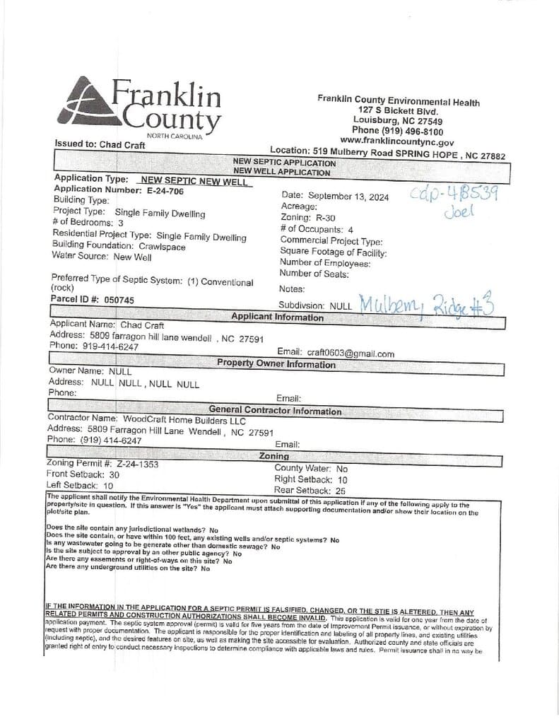 Major price improvement plus generous lender and seller contributions toward Buyer’s closing cost. 1 percent of the loan amount from the lender and $3,000 from the Seller make this move-in ready new construction on an unrestricted 1+acre rural lot much more affordable. Located in southern Franklin County, only minutes from Hwy 64 for easy access to Raleigh. This open floor plan, 1914 SF home, has 3 Bedrooms and 2 full Baths on the first level and a 366 SF bonus room and walk-in storage upstairs, plus a two car attached garage. Family room with vaulted ceiling and fireplace opens to kitchen and dining area. Kitchen features a island, custom cabinets, granite countertops, stainless steel appliances and a pantry. Dining area opens to a covered rear porch. Master suite with a trey ceiling and a large walk-in closet. Master bath has a ceramic tile shower, garden tub and a double sink vanity with granite countertop. Hall bath has a fiberglass tub/shower combo and a single sink with granite countertop. Side entry, 2 car garage with concrete drive and sidewalk to front porch. Vinyl siding, shutters on front windows. Front porch and rear covered porch. Smooth painted 9′ ceilings throughout house. LVP flooring in foyer, family room, kitchen and dining area. LVP in bathrooms and laundry room. Carpet in bedrooms, stairs and bonus room. The second level has lots of walk-in unfinished space for storage. Duke Progress Energy, Well Water and On-Site Septic. County Taxes only. Seller will offer up to $3,000 towards buyer’s closing costs with an acceptable offer. Seller’s preferred lender will assist with Buyer’s closing costs or interest rate buy down.