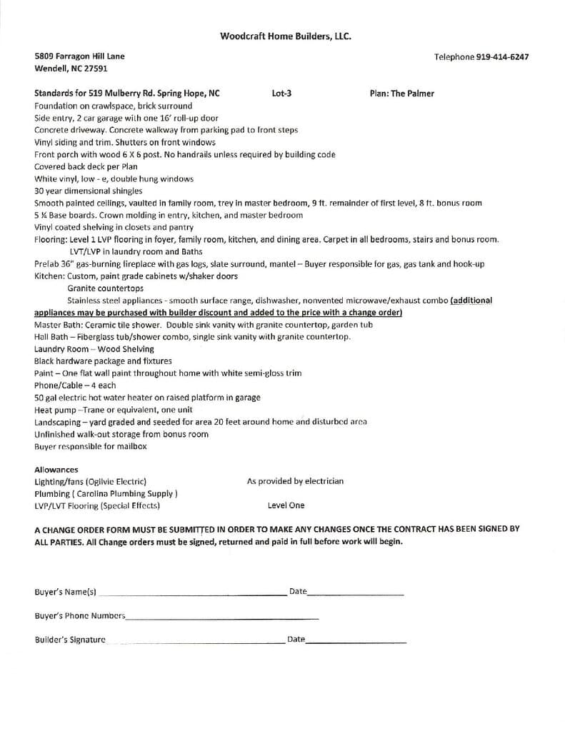 This open floor plan, 1914 SF home, has 3 Bedrooms and 2 full Baths on the first level and a 366 SF bonus room and walk-in storage upstairs, plus a two car attached garage. Family room with vaulted ceiling and fireplace opens to kitchen and dining area. Kitchen features a island, custom cabinets, granite countertops, stainless steel appliances and a pantry. Dining area opens to a covered rear porch. Master suite with a trey ceiling and a large walk-in closet. Master bath has a ceramic tile shower, garden tub and a double sink vanity with granite countertop. Hall bath has a fiberglass tub/shower combo and a single sink with granite countertop. Side entry, 2 car garage with concrete drive and sidewalk to front porch. Vinyl siding, shutters on front windows. Front porch and rear covered porch. Smooth painted 9′ ceilings throughout house. LVP flooring in foyer, family room, kitchen and dining area. LVP in bathrooms and laundry room. Carpet in bedrooms, stairs and bonus room. The second level has lots of walk-in unfinished space for storage. Duke Progress Energy, Well Water and On-Site Septic. County Taxes only. Seller will offer up to $3,000 towards buyer’s closing costs with an acceptable offer. Seller’s preferred lender will assist with Buyer’s closing costs or interest rate buy down.