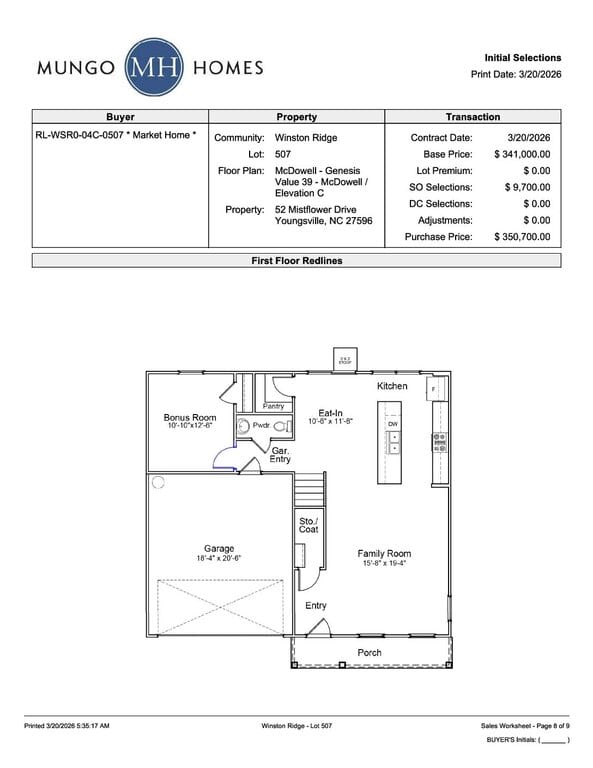 Opportunity to go to Mungo Design Center and choose decor options! Home office/flex space on main level! Kitchen: features a 10′ island, custom cabinets, granite countertops, accent flooring and walk-in pantry!