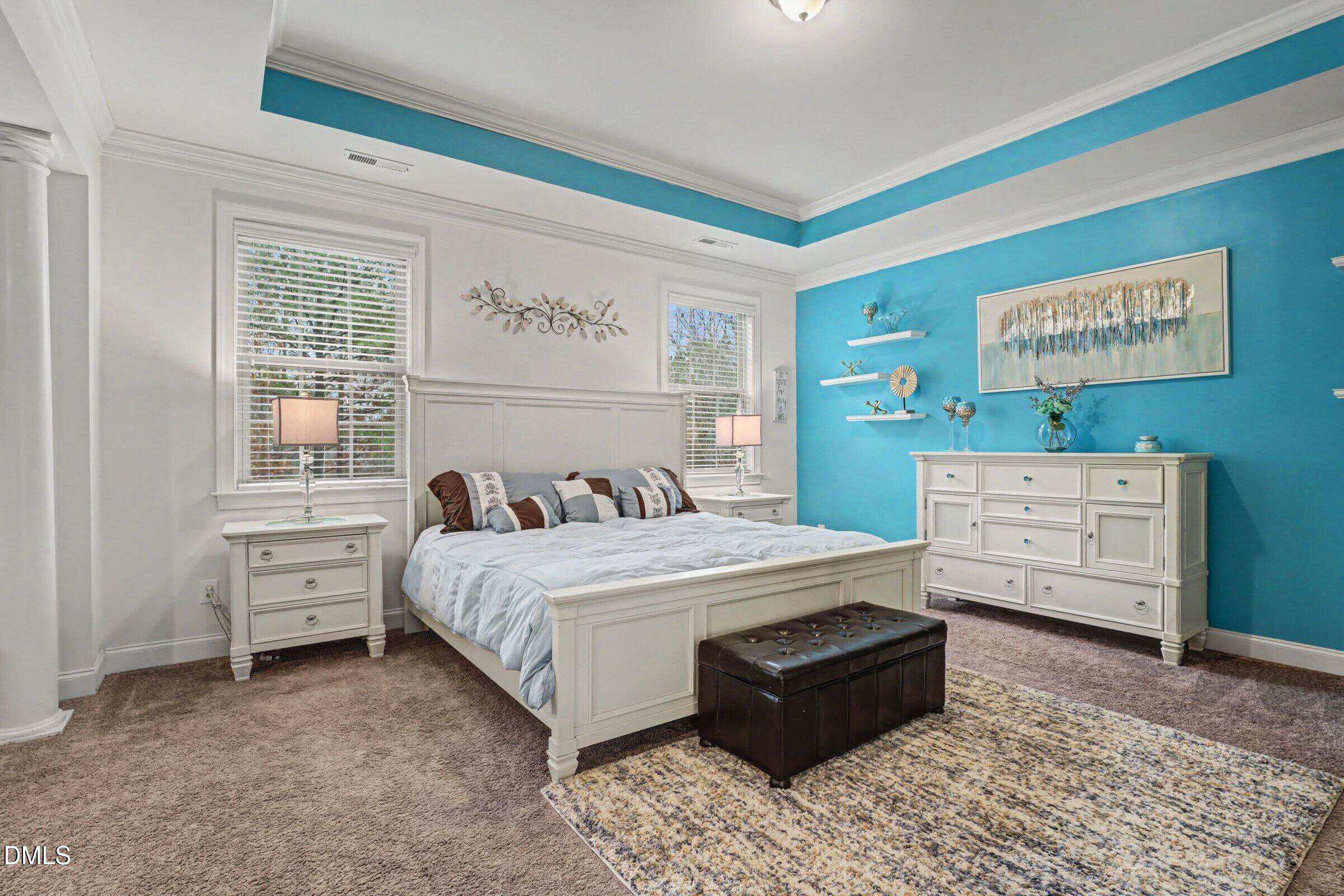 This home includes TWO STAIRCASES, a MAIN-LEVEL GUEST SUITE, oversized two-car garage, GENEROUS SIZE LOFT, raised ceilings on both floors, and well-appointed upstairs laundry room with cabinets and sink. The LUXURIOUS 1200 sq ft MASTER SUITE offers a PRIVATE SITTING ROOM with FIREPLACE, MORNING BAR, MASSIVE DUAL ROMAN SHOWER & TUB, and HUGE WALK-IN CLOSET.