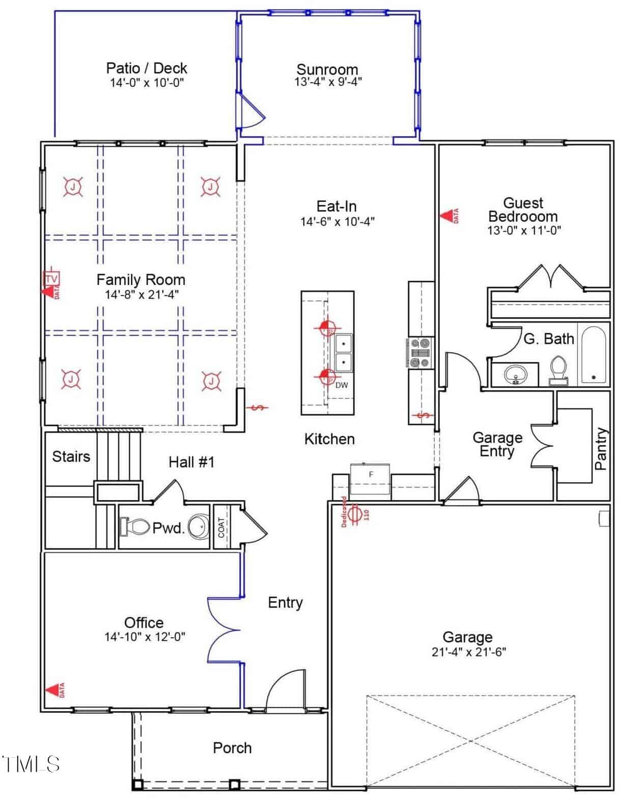 This thoughtfully designed floor plan features a main-level guest suite with private full bath, a dedicated office with French doors, and a bright sunroom filled with natural light.
