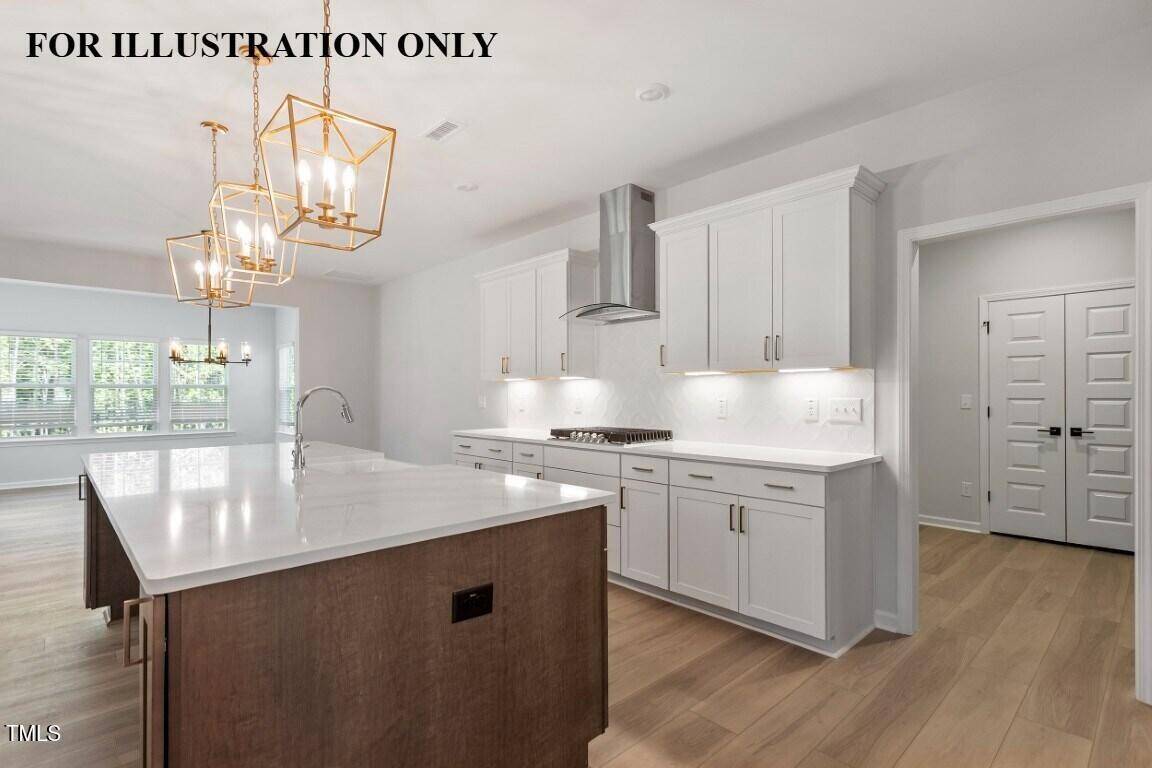 Exceptionally private 1-acre homesite with pool potential—offering peace, space, and nearly no surrounding neighbors! This thoughtfully designed floor plan features a main-level guest suite with private full bath, a dedicated office with French doors, and a bright sunroom filled with natural light. Luxury vinyl plank flooring extends throughout the entire first floor, upstairs hallway, and large private bonus room—both stylish and low-maintenance. The gourmet kitchen is a true centerpiece, showcasing upgraded Brellin PureStyle Greyhound full-overlay soft-close cabinetry, a 5-burner gas cooktop, built-in oven with convection microwave, concealed-control stainless steel dishwasher, and Miami Oro quartz countertops. Finishes include a stunning Mesmerist Hexagon tile backsplash, pendant lighting, a large island with seating, and elegant crown molding. The great room features a coffered ceiling and crown molding, and opens directly into the sunroom, where expansive windows offer serene, private views of mature trees and natural light throughout. Upstairs, the primary suite is a true retreat—featuring a tray ceiling with crown, plush carpeting, ceiling fan, and multiple windows. The spa-like bath includes a tiled walk-in shower with a sitting ledge, dual quartz vanities, his-and-hers walk-in closets, and two linen closets for exceptional storage. Additional highlights include a large laundry room with upper cabinets and a granite folding counter for everyday convenience. With a private setting, high-end finishes, and a flexible, elegant layout, this home stands out as a rare opportunity for comfort, luxury, and space.