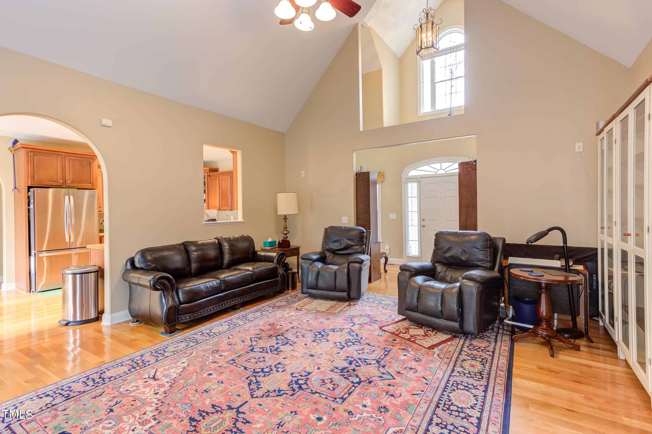True Custom Ranch on private 1.29 acres with (35 x 28) detached garage/shop backing to wooded buffer. NO HOA!! (4) full bedrooms (3 on 1st floor to include primary), huge vaulted living room, open kitchen, dining room, breakfast room complete the 1st floor. 2nd floor features huge bonus room, 4th bedroom, full bath and walk-in attic space. (2) car attached garage, screen porch, Trex deck and garden shed complete the picture. Custom details and craftsmanship throughout. Bring the boat, RV, hobbies, etc!! Great Youngsville location!
