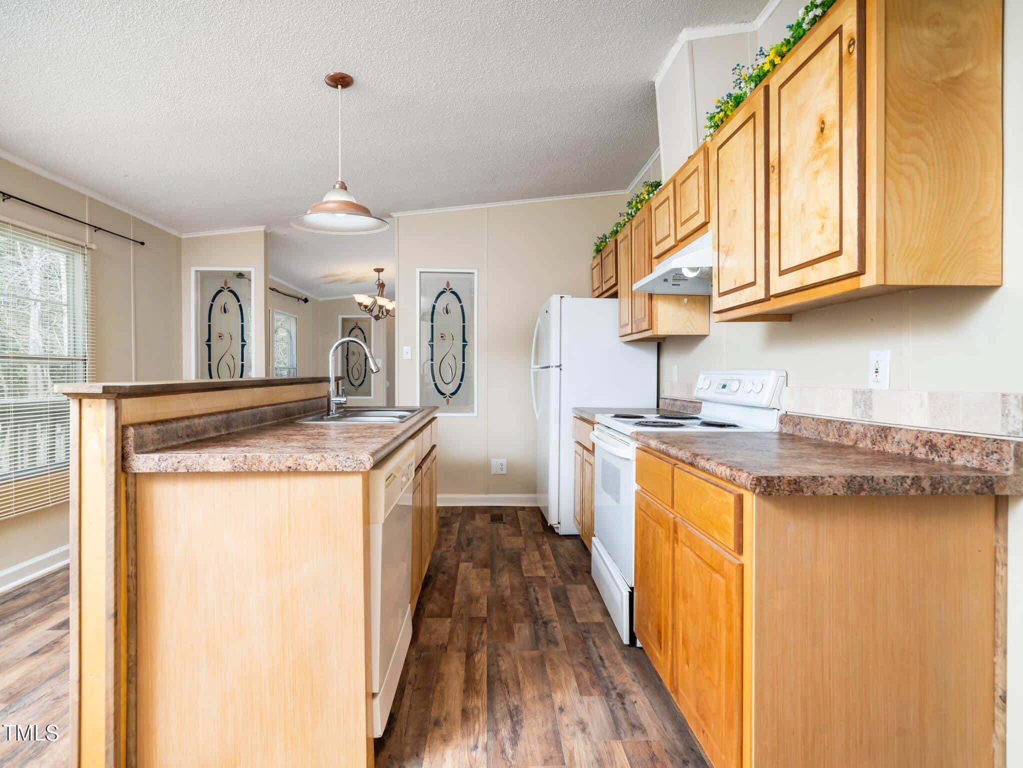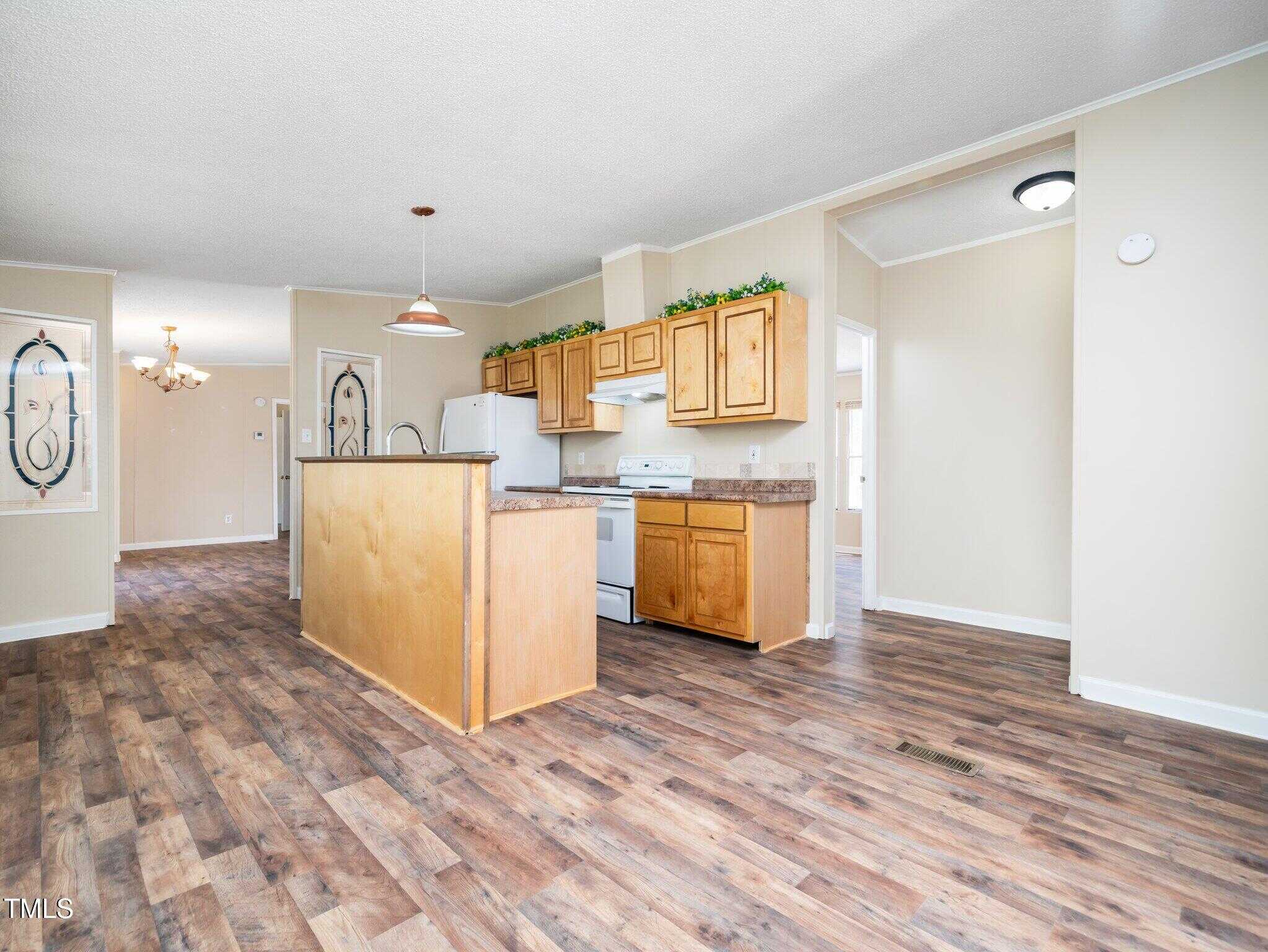You’ll find a spacious and inviting floor plan featuring a large living room with a wood-burning fireplace and abundant natural light, perfect for relaxation or entertaining. The open kitchen is a chef’s delight with space for a breakfast nook ideal for informal meals and get-togethers.
