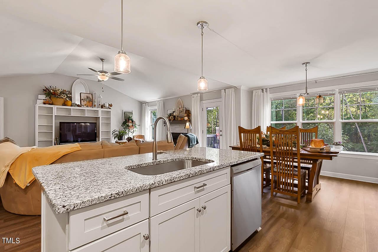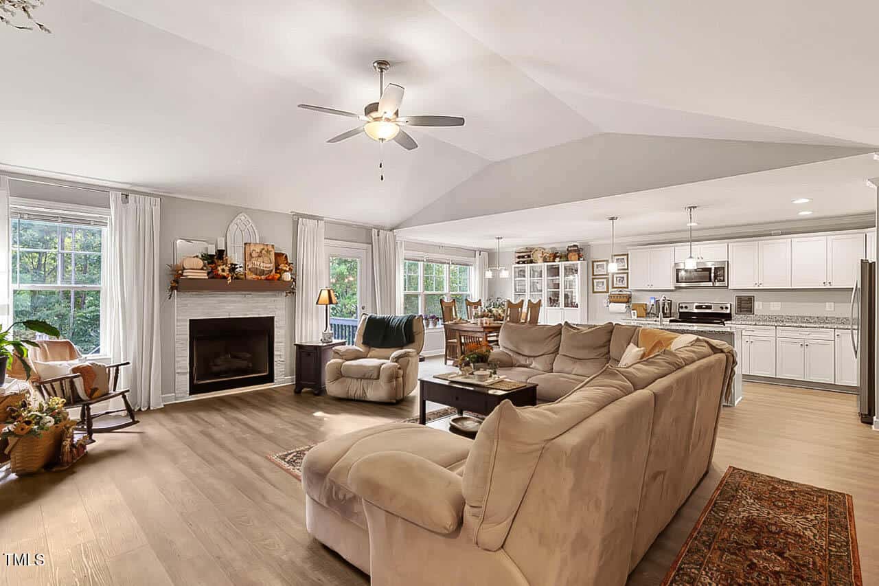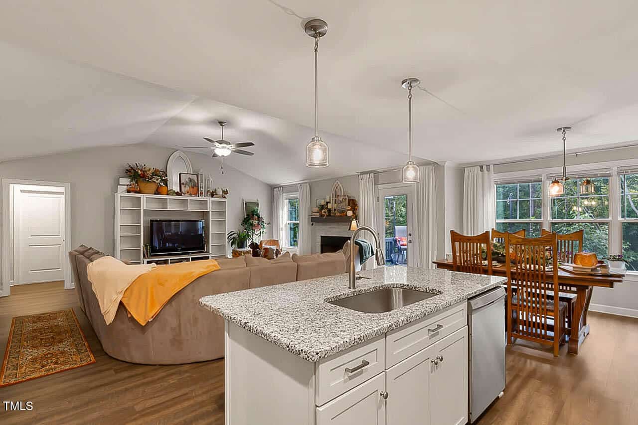 Discover this beautifully custom-built ranch home nestled on a spacious .91-acre lot, featuring lush landscaping and multiple fruit trees. With 3 bedrooms and 2 bathrooms, the inviting great room boasts a cozy gas log fireplace, perfect for relaxation. The kitchen showcases elegant granite countertops, and both the cabinets and wall units convey for added convenience.