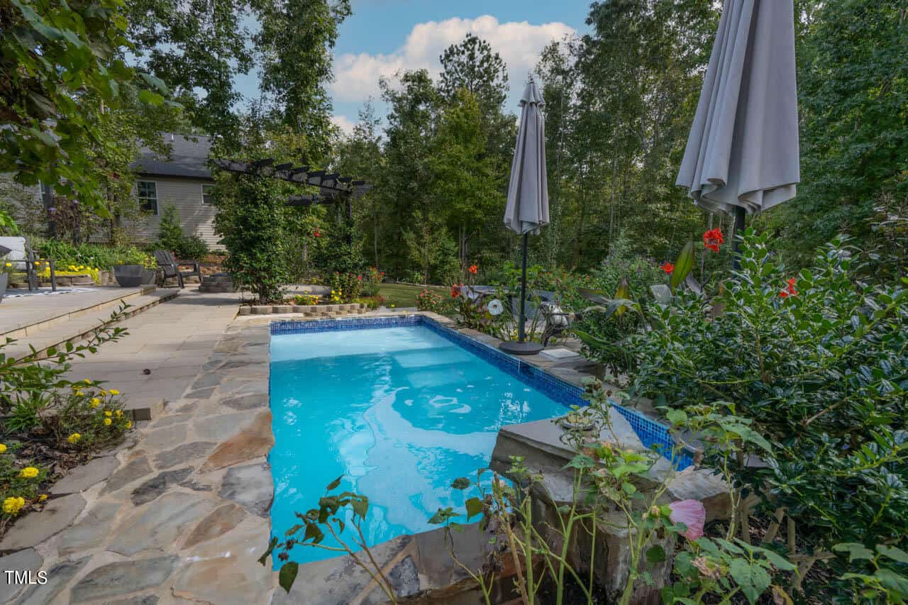 Step outside to your private oasis, complete with a swimming pool featuring a soothing waterfall and an outdoor shower. Enjoy peace of mind with a whole house filtration system, ensuring clean water throughout. The custom-built tranquility shed overlooks serene woods where you can spot deer, turkeys, and squirrels, creating a perfect retreat in nature.