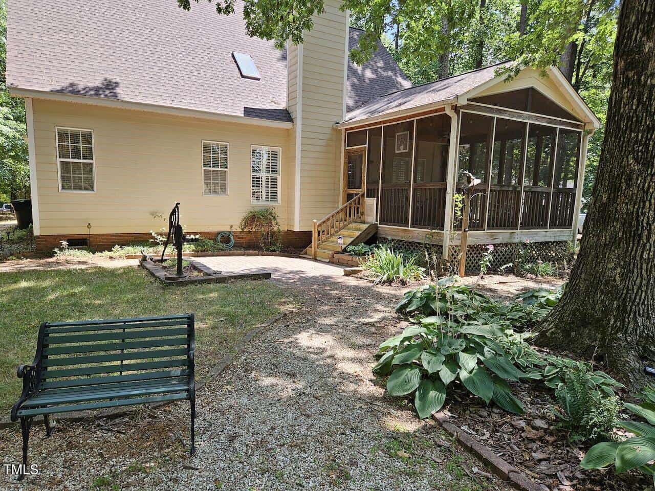 Come see this Wake Forest Wonder! This 3 Bedroom w/ Bonus room and 2 Car Garage has much to offer on this cut-de-sac lot in the established Sleepy Hollow Subdivision. Current Owners have done some Flooring and Owners Suite Bath Upgrades along with adding a 16×16 Rear Storage Shed since purchasing in mid 2016. Roof Replaced 2021. First Level has a two story family room, gas fireplace, Owners Suite, and Screen Porch leading to rear patio. Also a Eat-in kitchen and a formal dining space and laundry. Secondary bedrooms and Bonus Room upstairs. Wake Forest address with Granville County taxes. #Multiple Offers-Deadline Tuesday July 9th 5 pm.