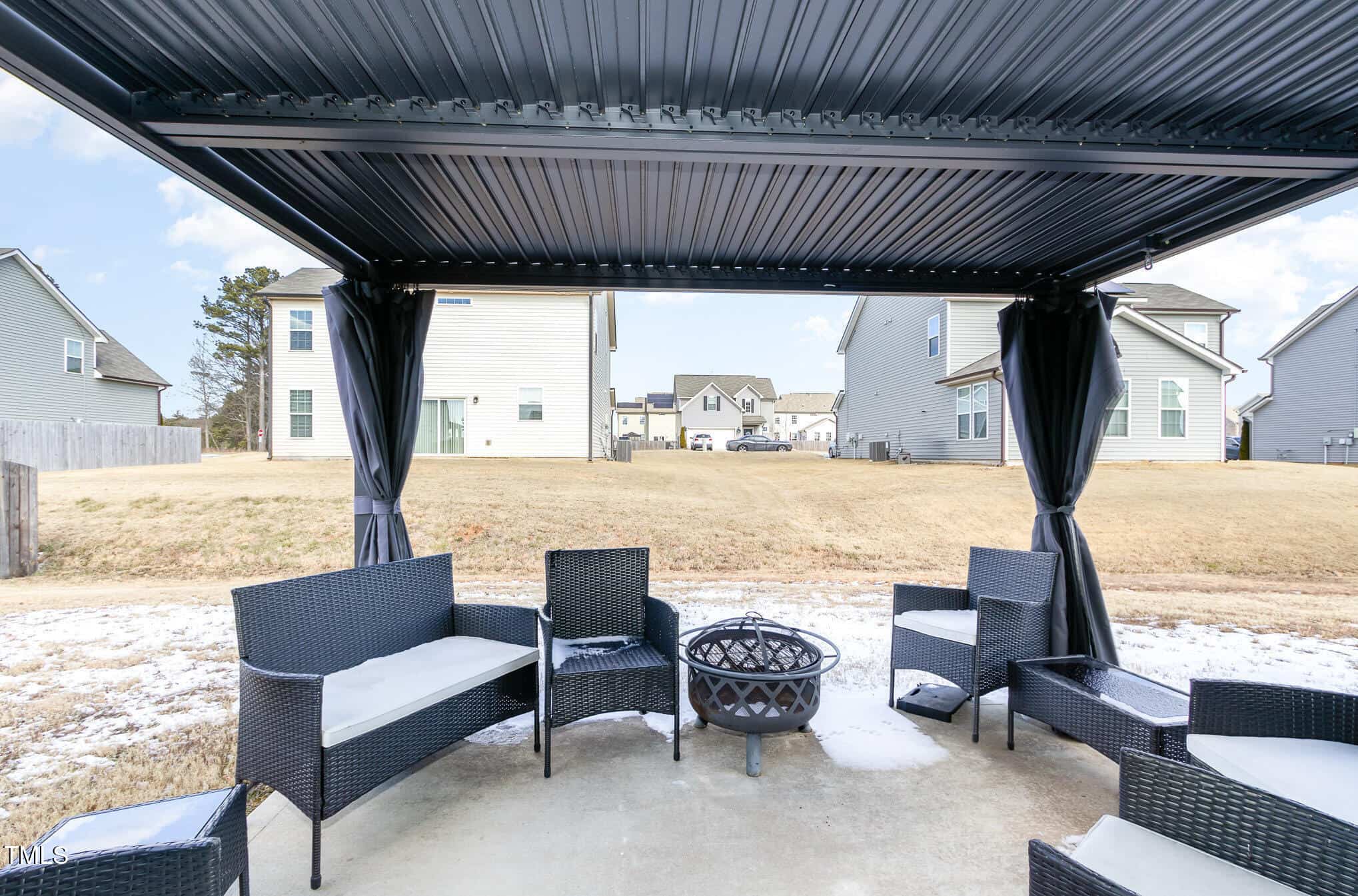 Modern & Stylish 4-Bedroom Home with High-End Finishes located less than a mile from charming Downtown Franklinton. This beautifully maintained 4-bedroom, 2.5-bath home, built in 2021, offers a perfect blend of comfort, and convenience. The open-concept living area features a gorgeous, custom black-finished, whole wall built-in, adding an elegant and sophisticated touch. The updated kitchen is designed for both function and style, with sleek and durable concrete countertops, custom backsplash and premium finishes. Stainless steel appliances and a glass front LED cabinet enhance the home’s modern appeal. The spacious primary suite includes a large walk-in closet, while the oversized primary bath features a walk-in shower and dual vanities. Continuing upstairs, the large secondary bedrooms offer plenty of space for family or guests. Outside, the covered patio with a pergola provides a great shaded space for outdoor dining and entertaining. Backyard is flat and usable with good separation from neighbors. Conveniently located near everything downtown Franklinton has to offer and to the US-1 providing quick and easy access to Raleigh and surrounding areas.