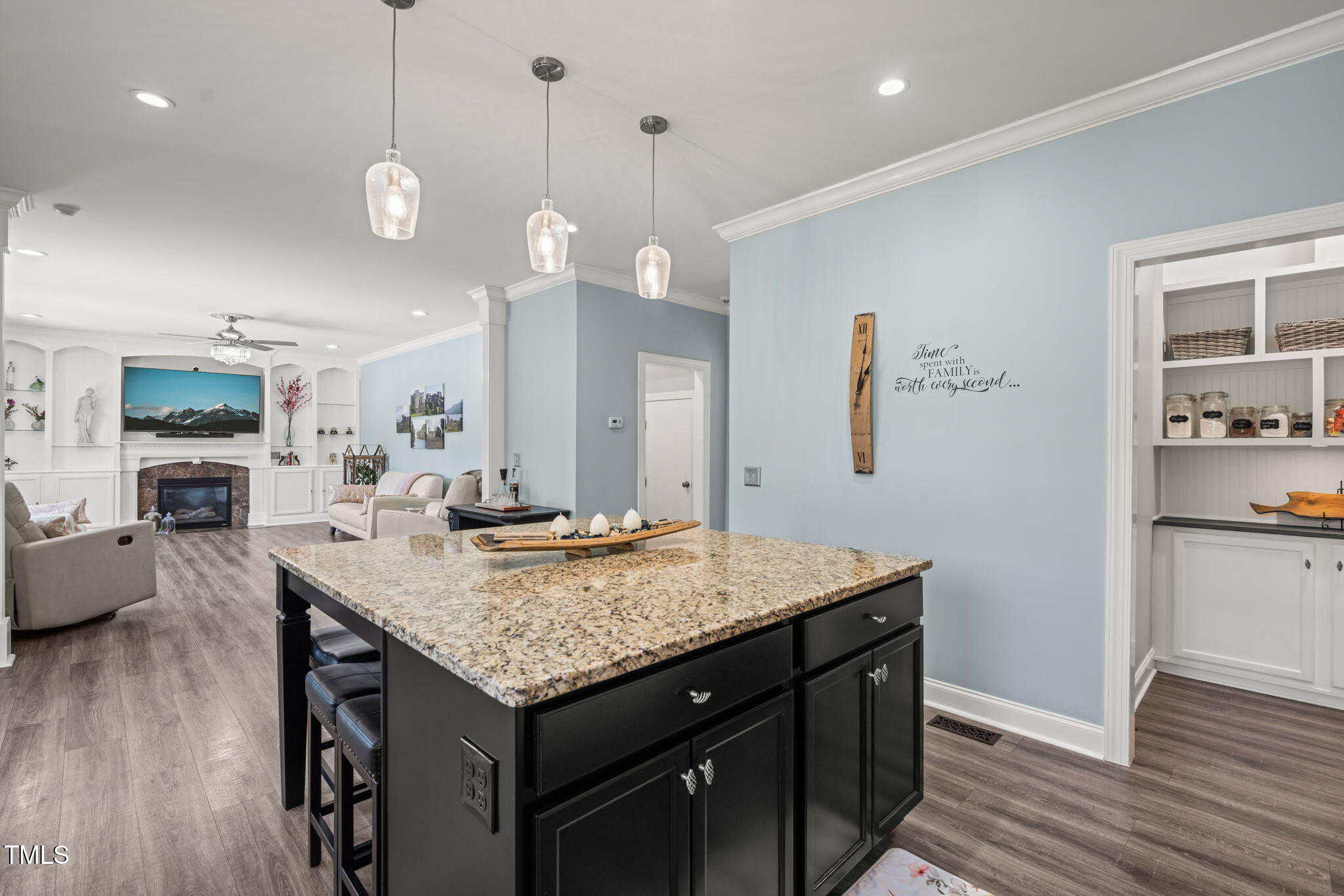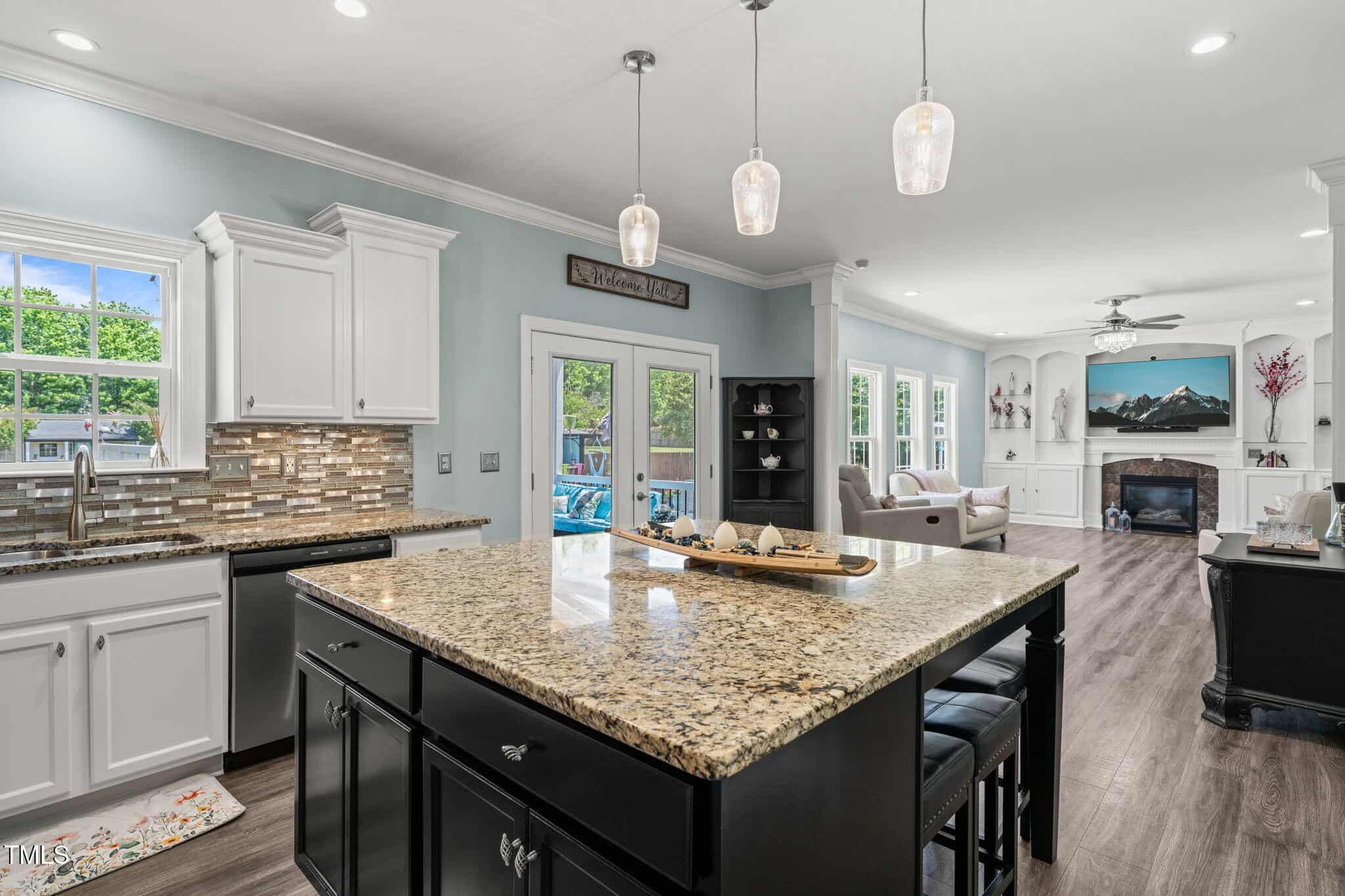 Inside, the open-concept layout includes remote home office, a stylish kitchen with granite countertops, new stainless steel appliances, custom butler pantry, and a center island that flows into the spacious living area with a cozy gas fireplace and custom built-in shelves. Upstairs, enjoy spacious primary suite and 3 additional bedrooms, fully upgraded bathrooms, and upgraded recess lighting; fresh interior paint.