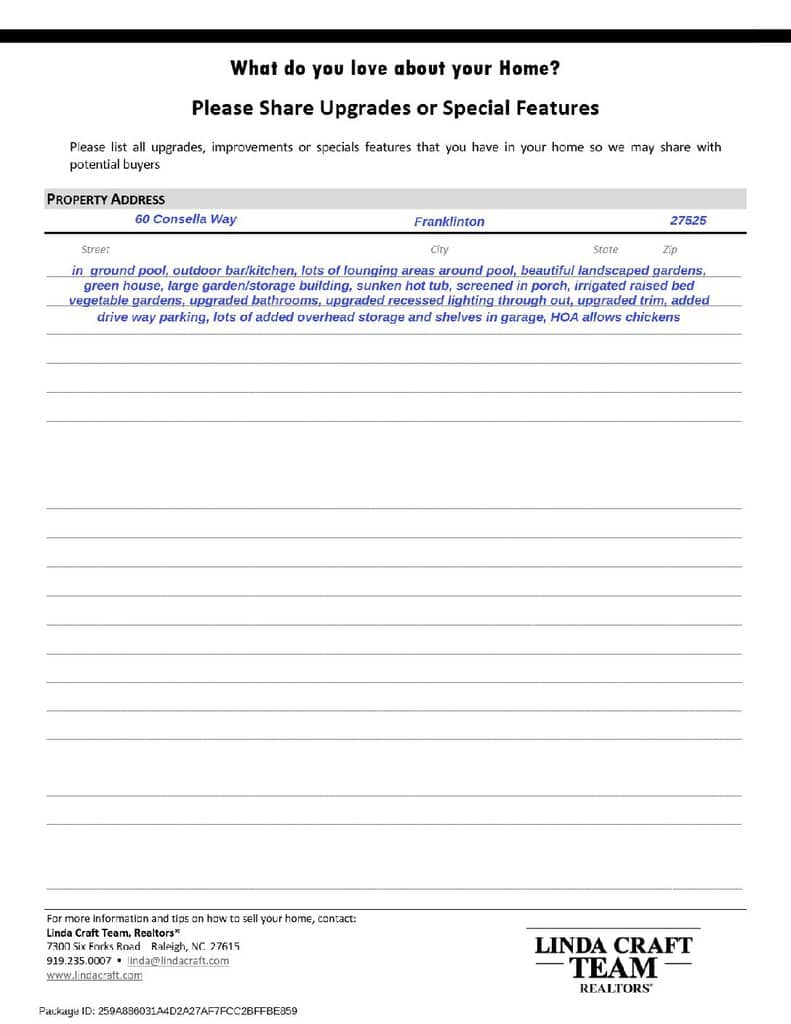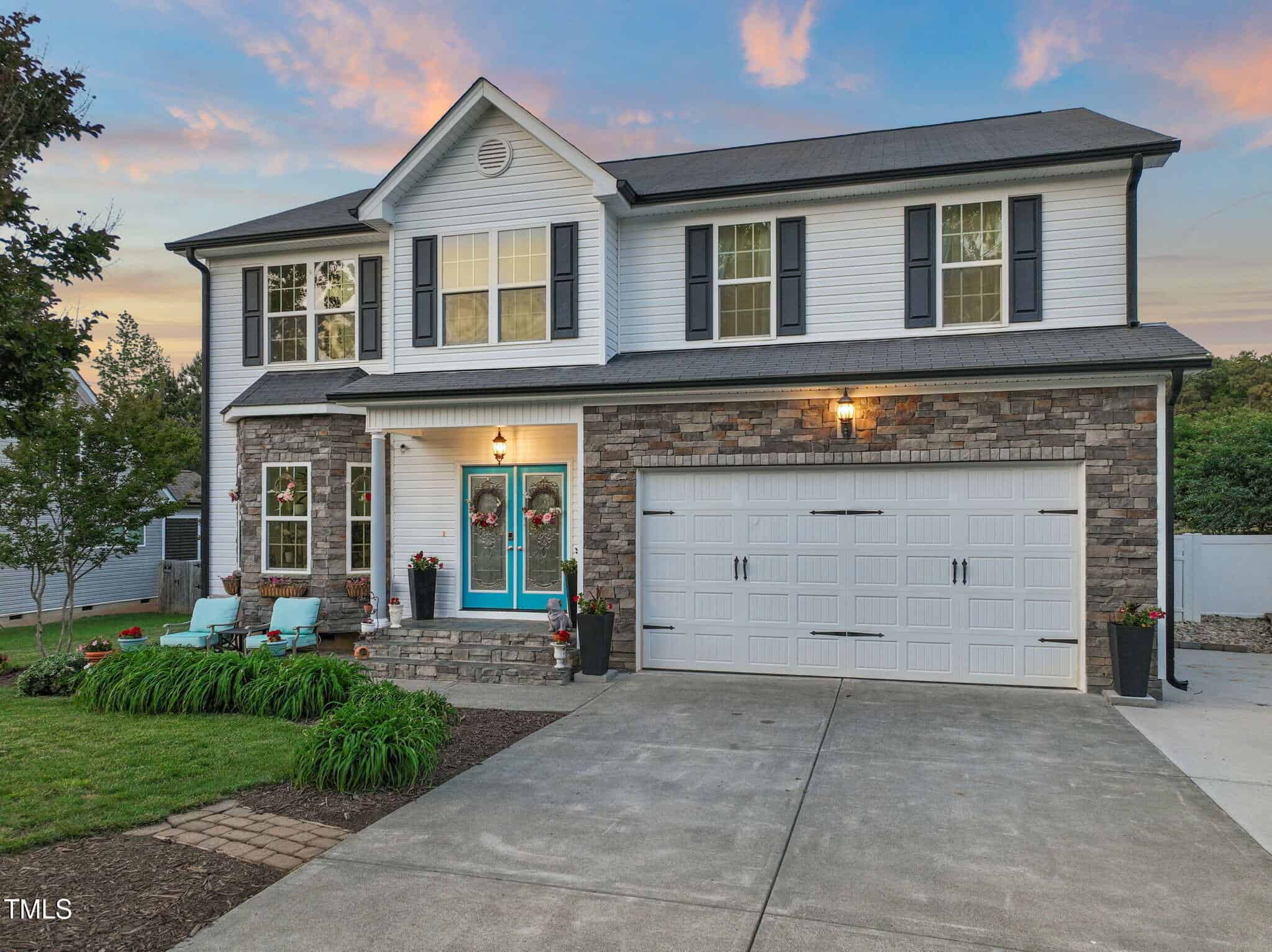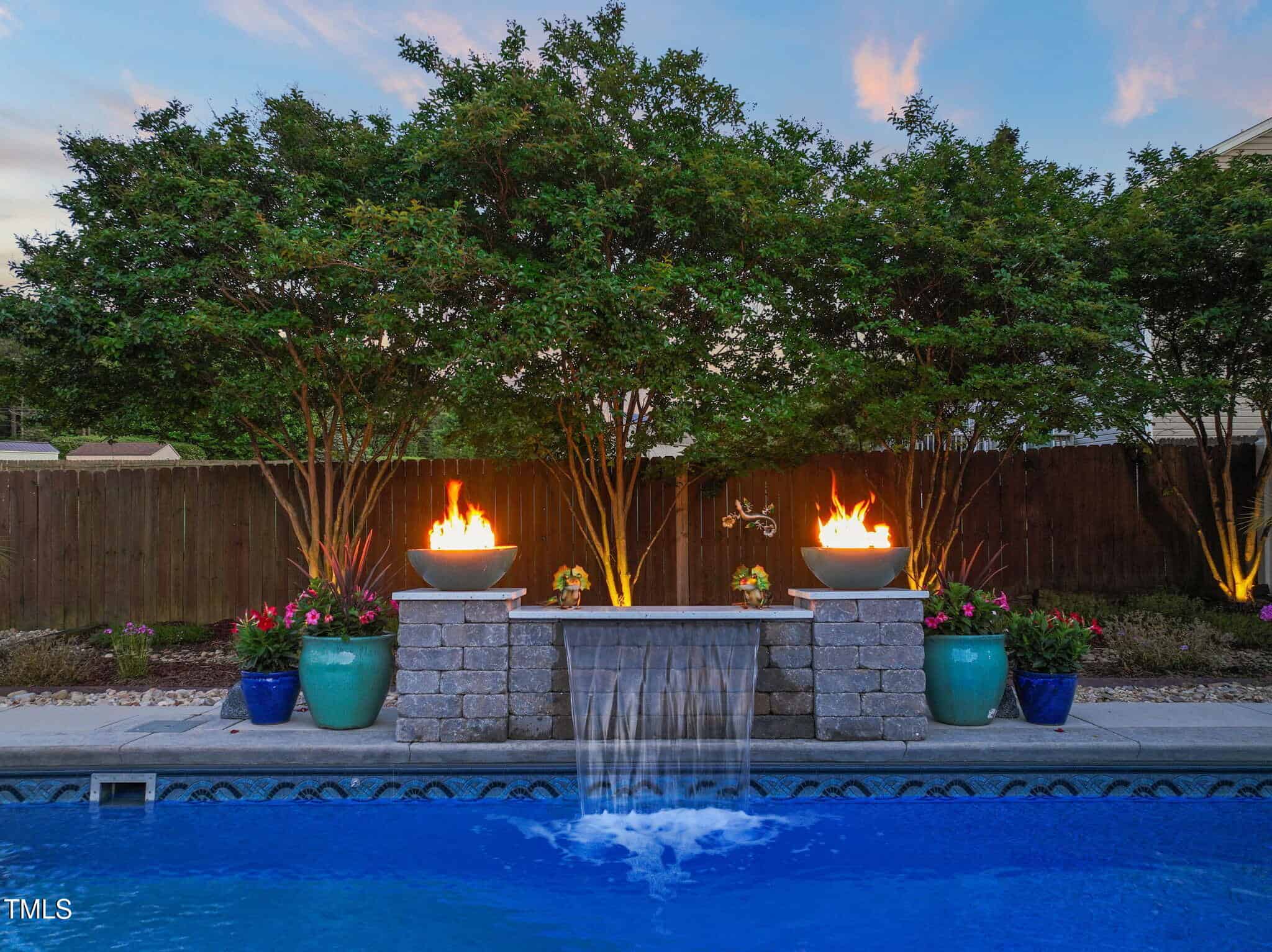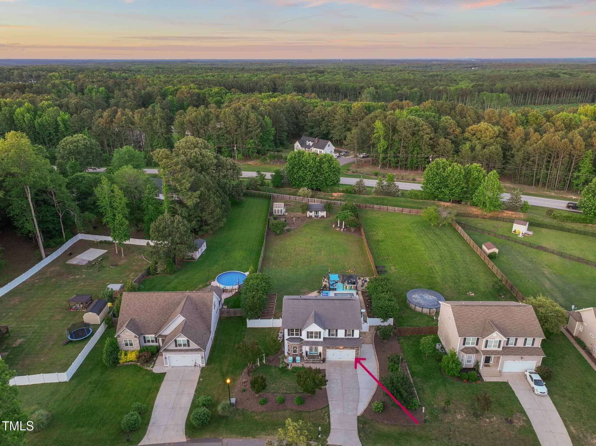 Backyard Oasis with In-Ground Pool, Hot Tub & Tiki Bar – 60 Consella Way, Franklinton, NC. Welcome to your private retreat in the sought-after Windsor Estates community! This beautifully maintained 4-bedroom, 2.5-bathroom, 2353 sf home offers the perfect blend of indoor comfort and resort-style outdoor living on a spacious 0.79 acre lot. Step outside into a backyard paradise featuring a custom in-ground pool, relaxing hot tub, and a fully equipped tiki bar—ideal for summer entertaining or quiet evenings under the stars. Green thumbs will love the irrigated garden beds and greenhouse, offering year-round opportunities for growing fresh produce and flowers. And one bonus with the high costs of eggs, you can raise your own chickens! Inside, the open-concept layout includes remote home office, a stylish kitchen with granite countertops, new stainless steel appliances, custom butler pantry, and a center island that flows into the spacious living area with a cozy gas fireplace and custom built-in shelves. Upstairs, enjoy spacious primary suite and 3 additional bedrooms, fully upgraded bathrooms, and upgraded recess lighting; fresh interior paint. With its vibrant outdoor amenities and thoughtfully updated interior, this home truly offers the best of both worlds. Located just minutes from downtown Franklinton and Youngsville, with easy access to Wake Forest and Raleigh. Don’t miss this rare backyard oasis—schedule your private showing today!