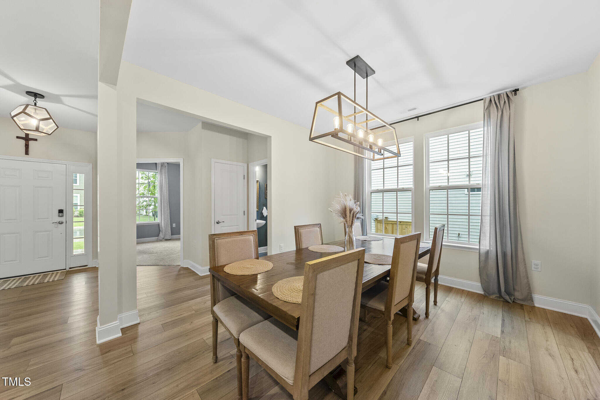 The fenced backyard offers a private, low-maintenance space for outdoor activities or quiet evenings. The garage provides extra storage room to meet your needs. Situated in a beautiful, walkable community, with a new pool currently under construction, the home is just a short drive from the quaint downtown areas of Youngsville and Wake Forest, providing easy access to schools, shopping, dining, and recreational options.