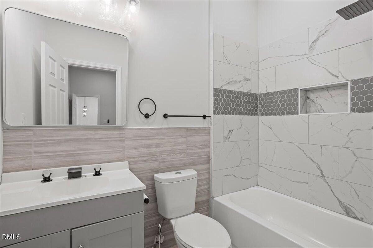 The primary suite offers a true sanctuary, anchored by a designer style bathroom with floor-to-ceiling bath tile work. Three additional well-sized bedrooms provide the versatility needed for a home office, guest space, or a media room.
