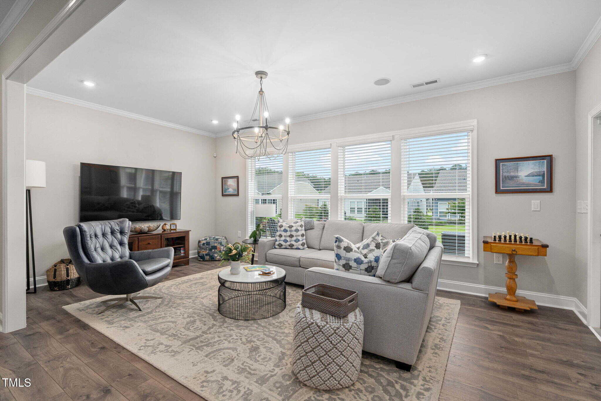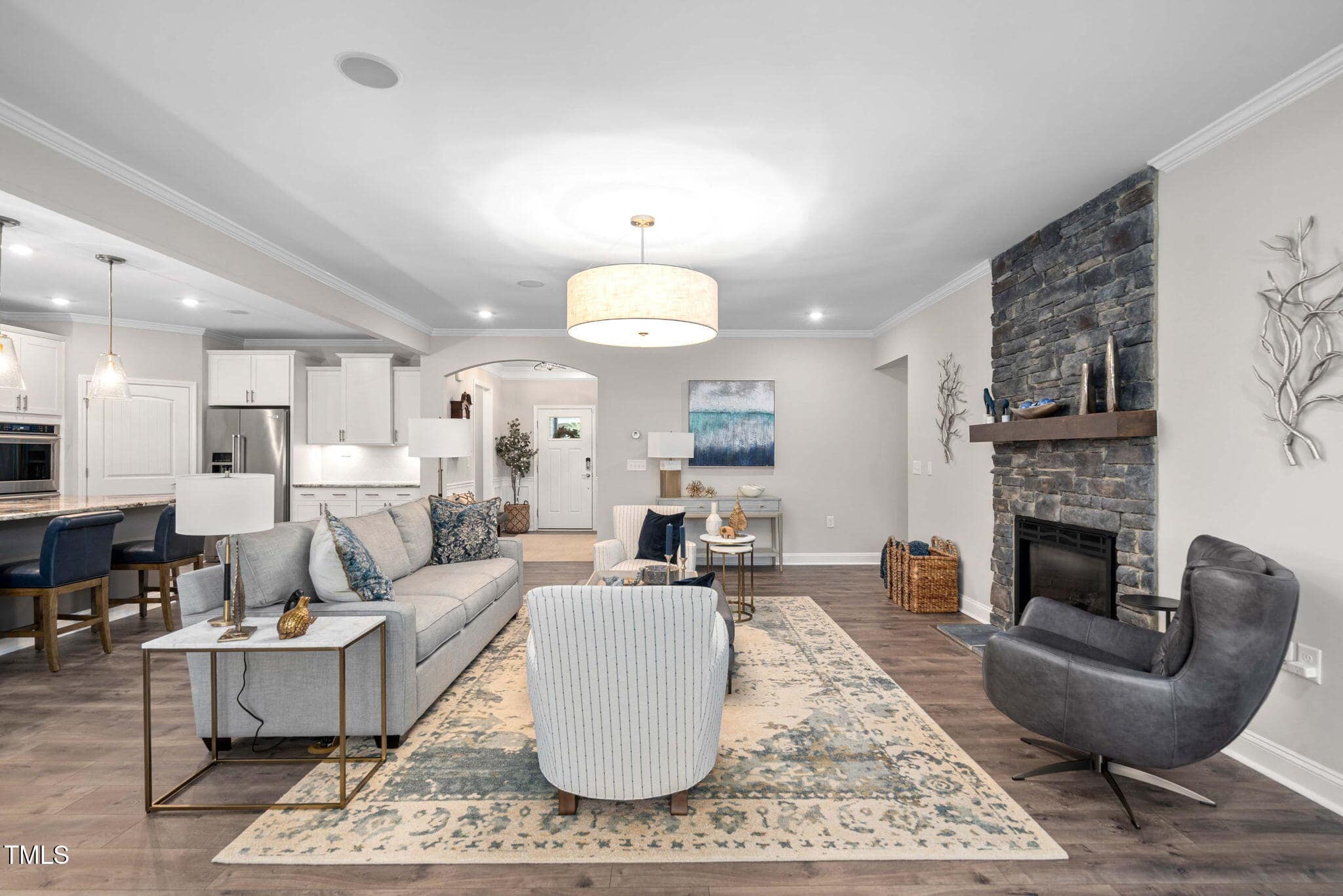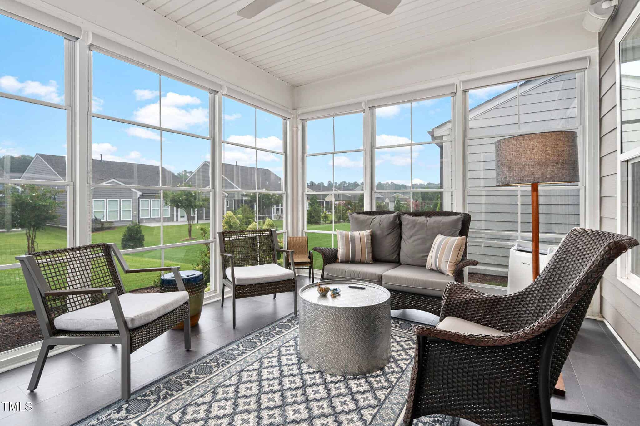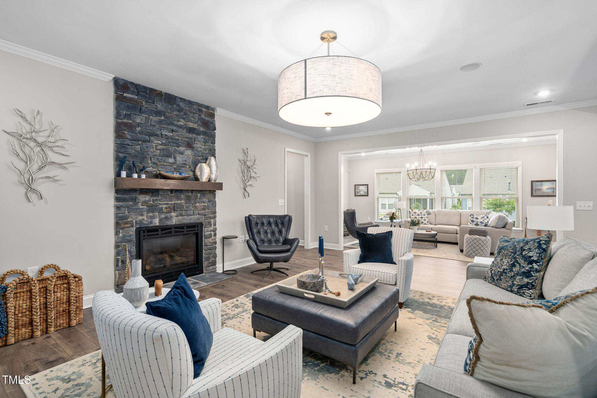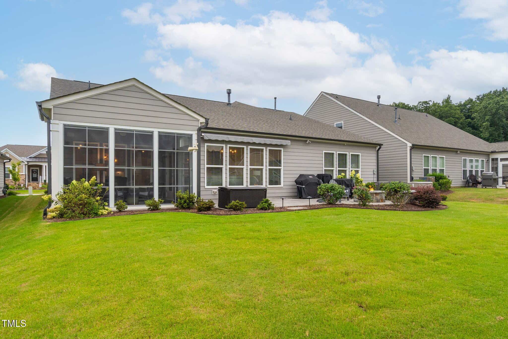 Impeccably upgraded one-level living in the premier 55+ community of Del Webb at Traditions! This stunning Dunwoody plan offers 2 spacious bedrooms plus a dedicated office and 2.5 baths—including a large primary suite with custom built-in closets. a private guest suite with its own full bath. With a flexible office space and thoughtfully designed layout, there’s room for everyone to feel right at home. This stunning one-level home is truly one of a kind-thoughtfully designed with top-tier upgrades and impeccable style throughout. From the moment you step inside, it feels like a professionally decorated model home—light-filled, welcoming, and loaded with custom touches.The heart of the home is the gorgeous family room featuring a dramatic floor-to-ceiling stone fireplace—perfect for cozy evenings or entertaining in style. The gourmet kitchen shines with a gas cooktop, 2 wall ovens, large island with quartz counter tops, upgraded lighting and premium finishes. The open layout flows effortlessly into a bright sunroom and an incredible 3-season room with EZE Breeze windows—your new favorite spot for morning coffee or afternoon relaxing. Step outside to your own private oasis: an extended paver patio with a gas fire pit, ideal for enjoying Carolina evenings year-round. You’ll love the extended garage with epoxy floors, and a workshop with built in cabinets for extra storage, plus a whole-house generator. Enjoy the amenities with a clubhouse, pool, fitness center and so many clubs and events.