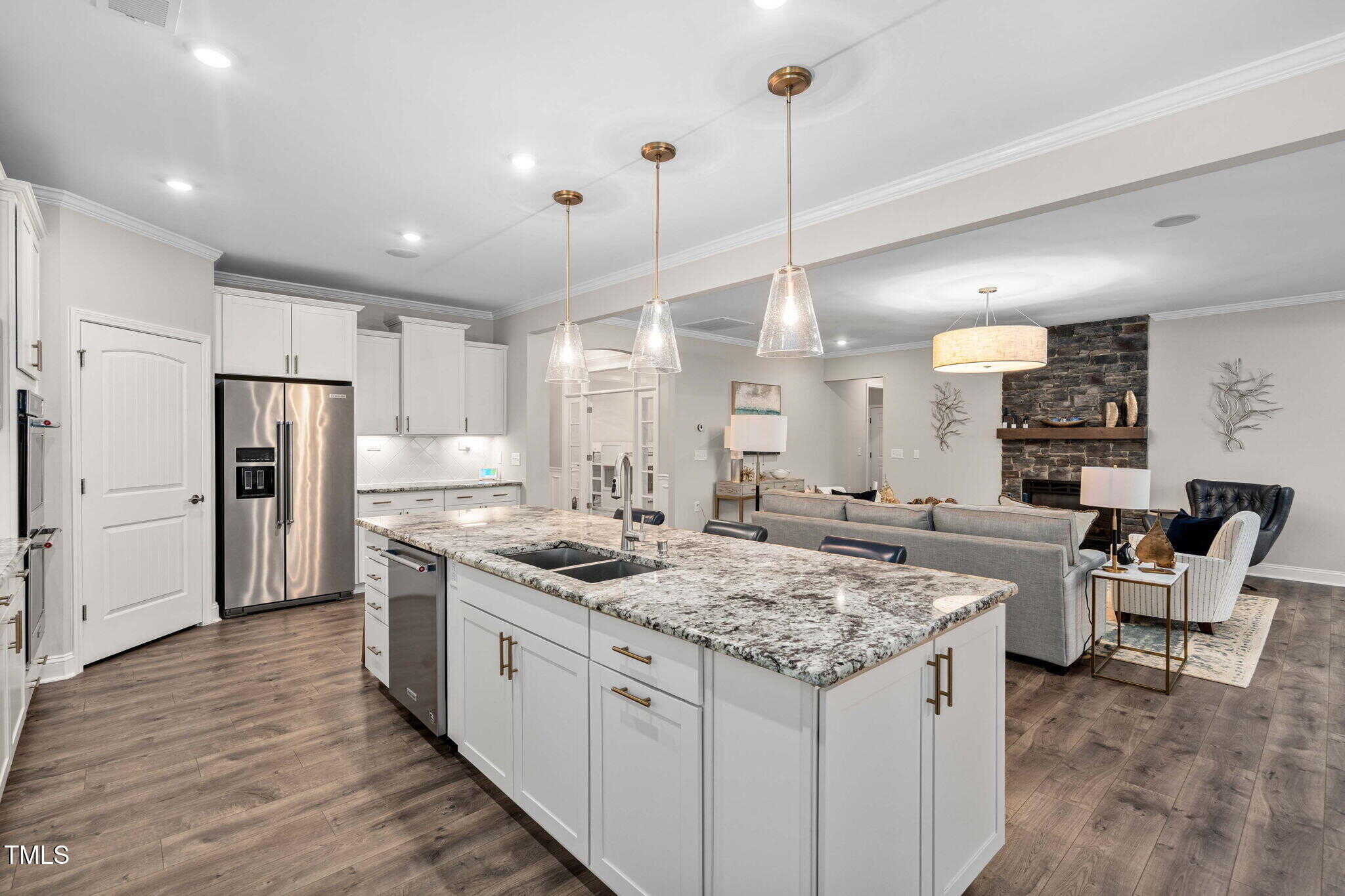 The heart of the home is the gorgeous family room featuring a dramatic floor-to-ceiling stone fireplace—perfect for cozy evenings or entertaining in style. The gourmet kitchen shines with a gas cooktop, 2 wall ovens, large island with quartz counter tops, upgraded lighting and premium finishes. The open layout flows effortlessly into a bright sunroom and an incredible 3-season room with EZE Breeze windows—your new favorite spot for morning coffee or afternoon relaxing.
