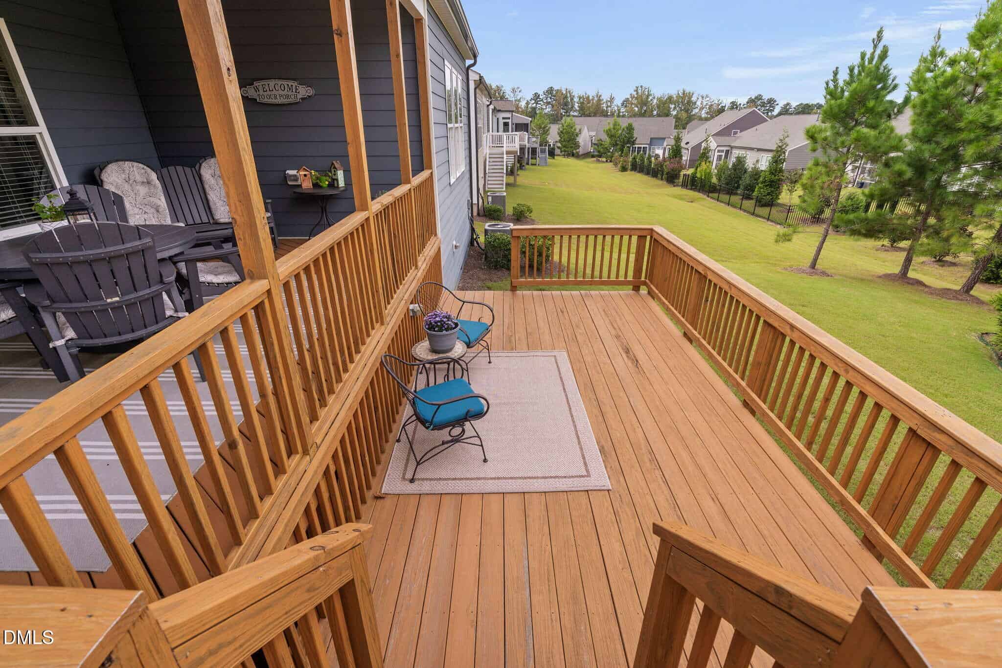 The primary suite feels like a retreat dual vanities, and a large walk-in shower. Step outside to a rare two-tier back deck with a covered porch, offering multiple spots to relax or entertain. The upper level is perfect for morning coffee, while the lower tier is great for grilling and entertaining.